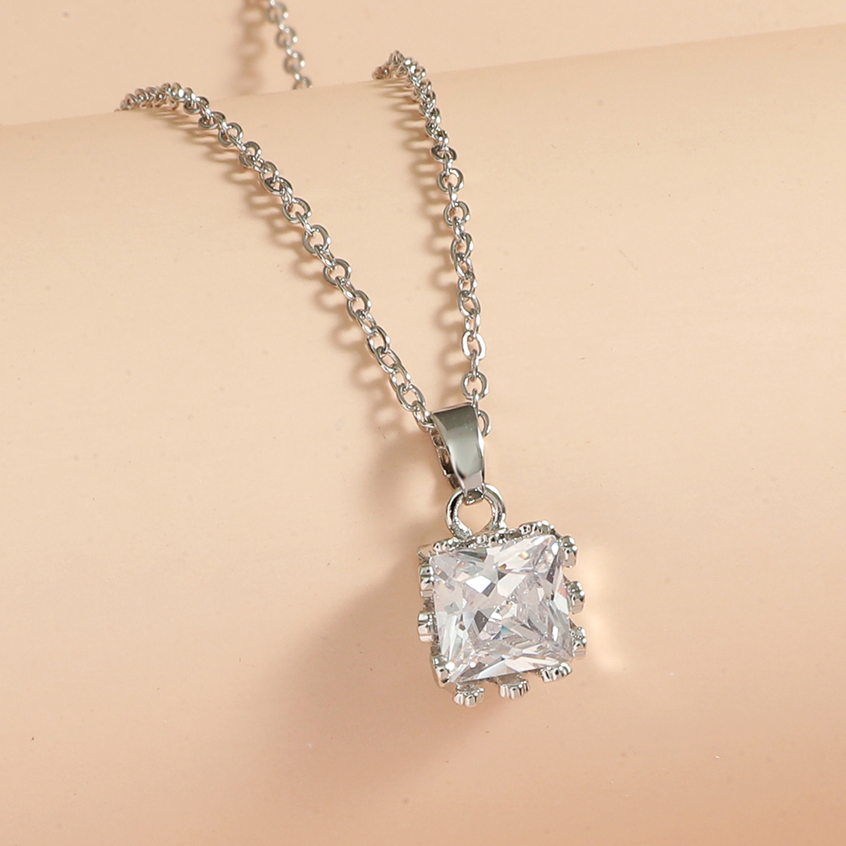 • Square zircon pendant with glistening clear crystal measuring 90mm