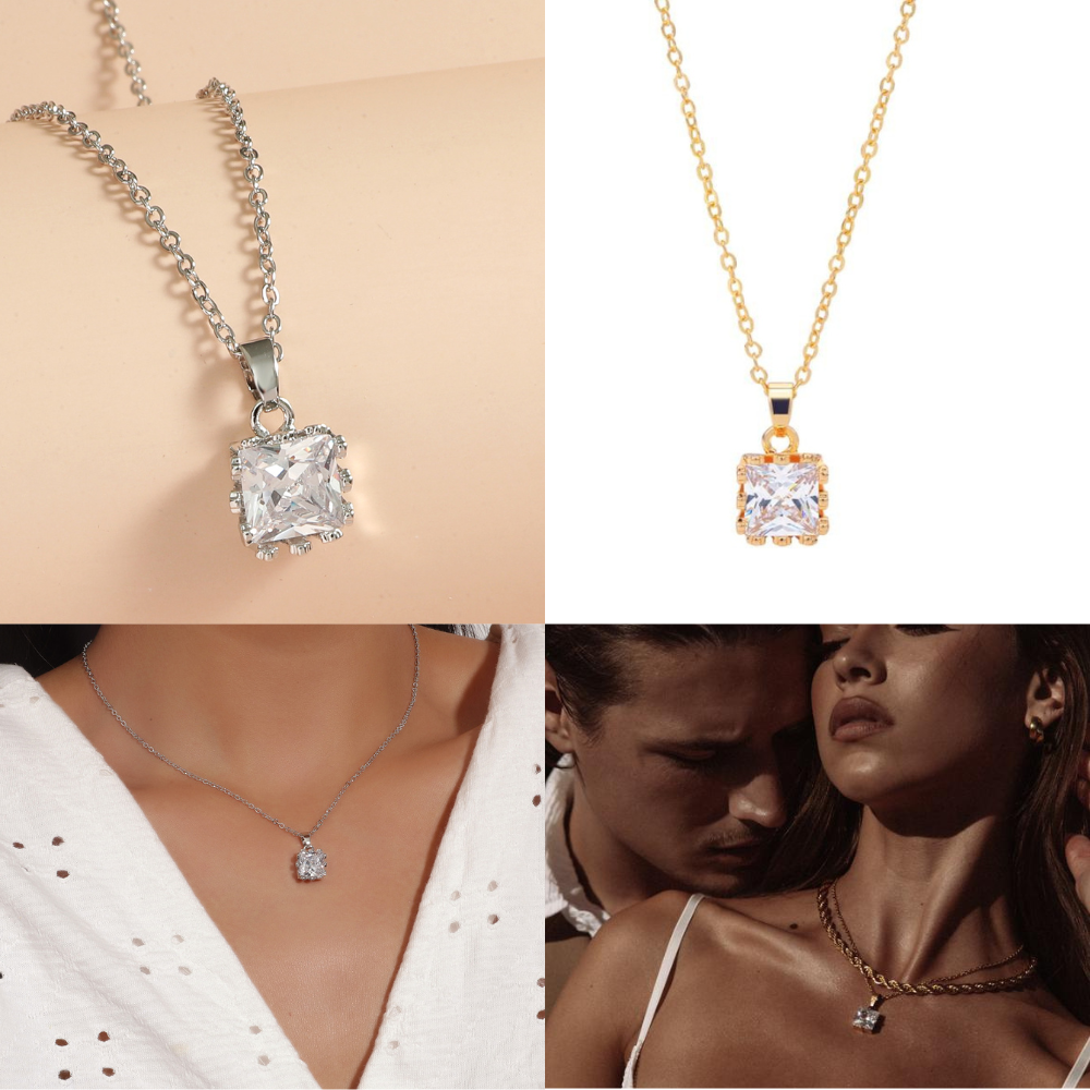 10 pcs - Princess Cut Solitaire Crystal Pendant in Gold and Silver - 2 Colours 5 Each|GCC104-Gold/Silver|UK SELLER