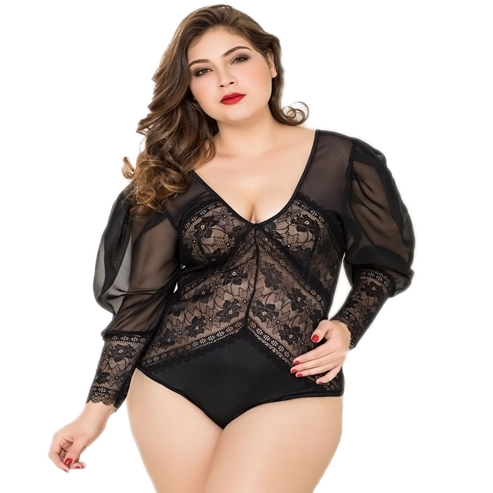 This premium quality tunning Black lace PLUS SIZE long sleeve body made of the highest quality materials, soft to touch and very comfortable.