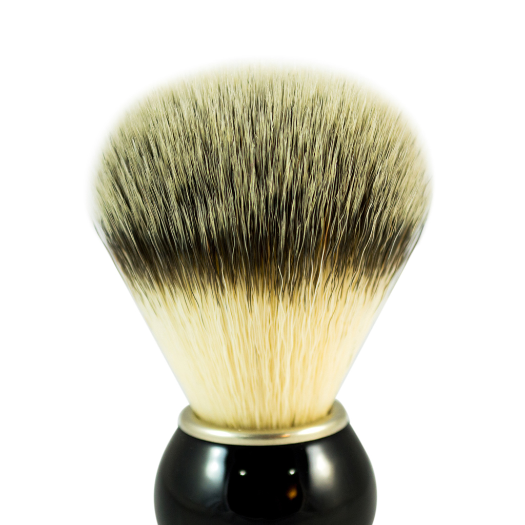1000 x synthetic vegan shaving brush with gloss black resin handle. High quality product.