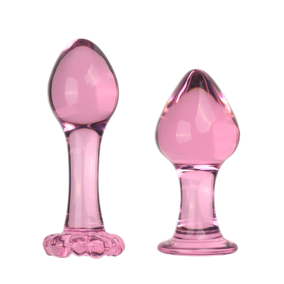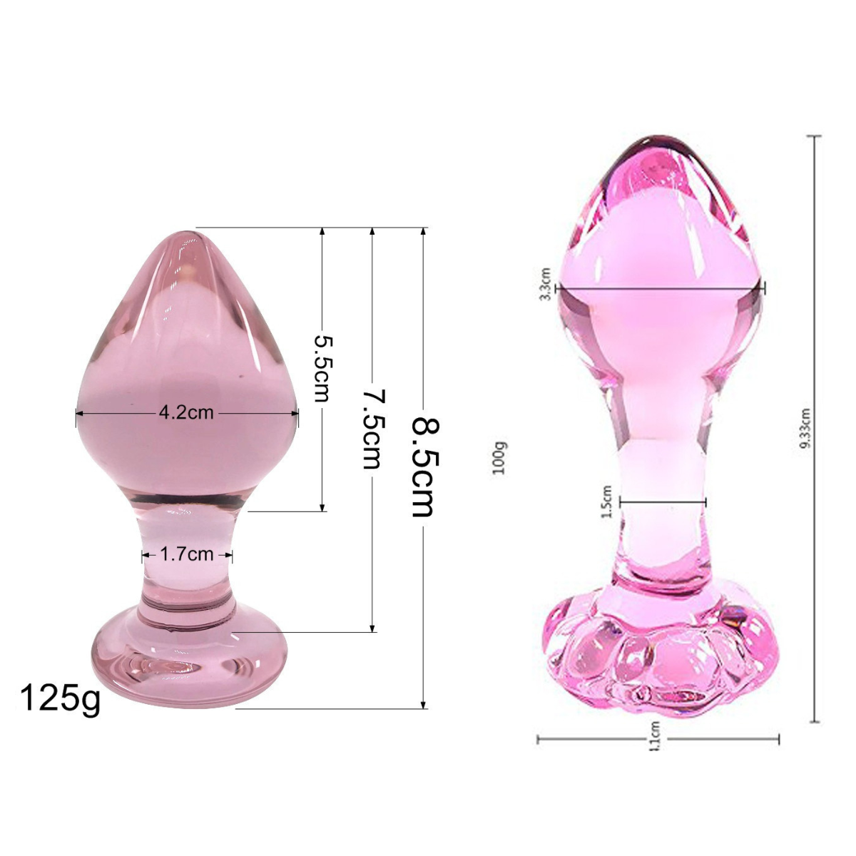 10pcs - Pink Anal Butt Plug Glass Dildo – Flower Base and Flat Base - Random|GCAP178-Flower Base/Flat Base|UK seller