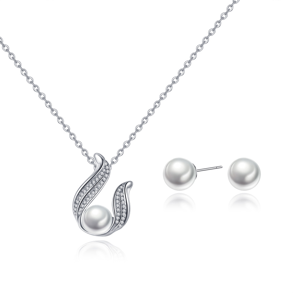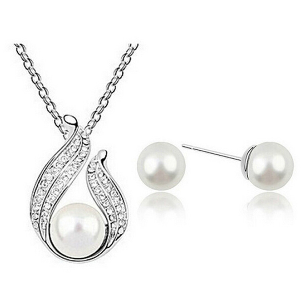 20 pcs - Elegant Silver Drop Design with Pearl Earrings and Crystal Pendant Necklace Sets (10 Sets)|GCJ160+GCJ231|UK SELLER