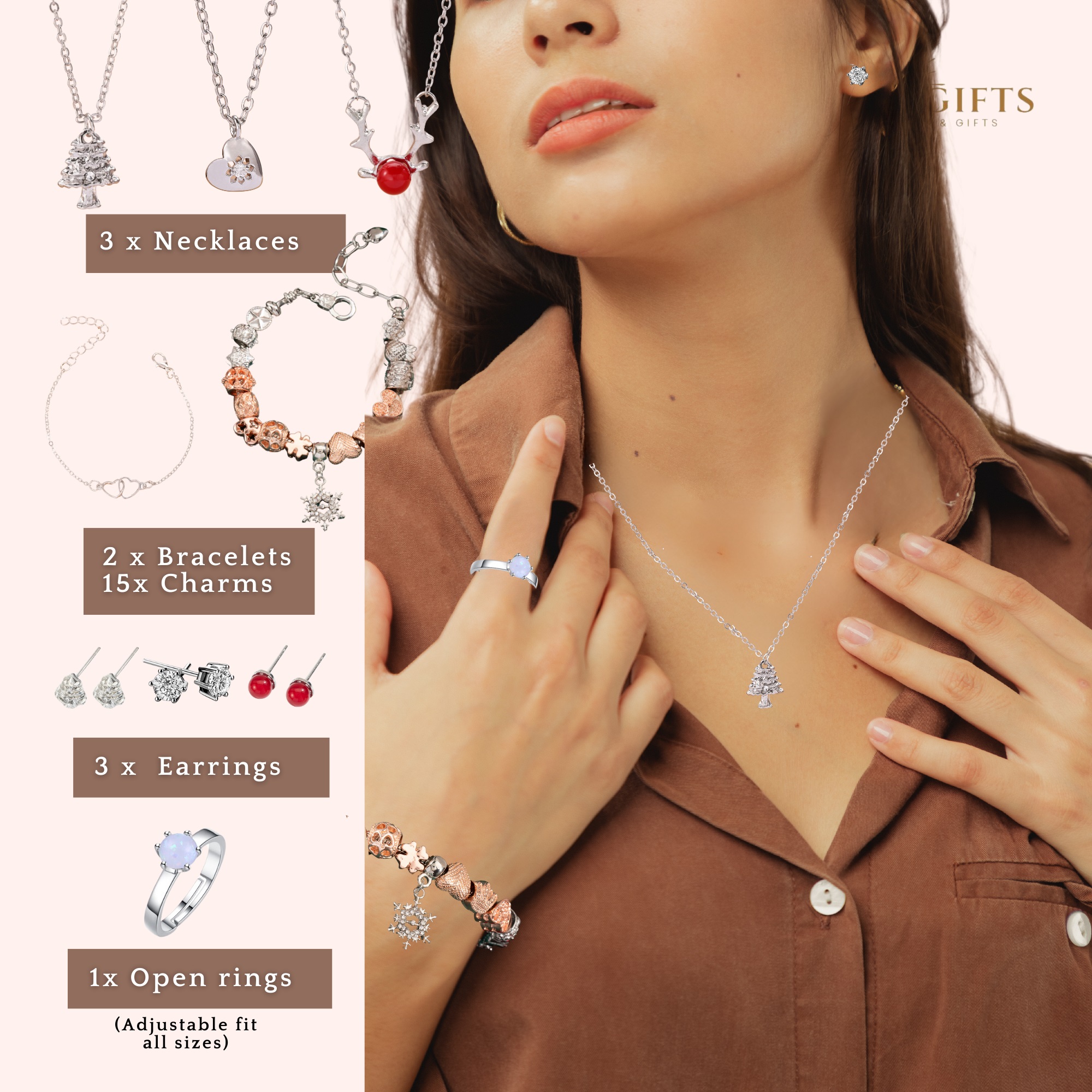 Celebrate the holiday season in style with our Christmas Jewellery Advent Calendar 2025, featuring 24 dazzling surprises designed to bring joy, sparkle, and elegance every day. Inside, you’ll discover an enchanting selection of necklaces, earrings, bracelets, charms, and a moonstone-effect ring, all beautifully crafted with premium rhodium plating for brilliance, durability, and hypoallergenic comfort.