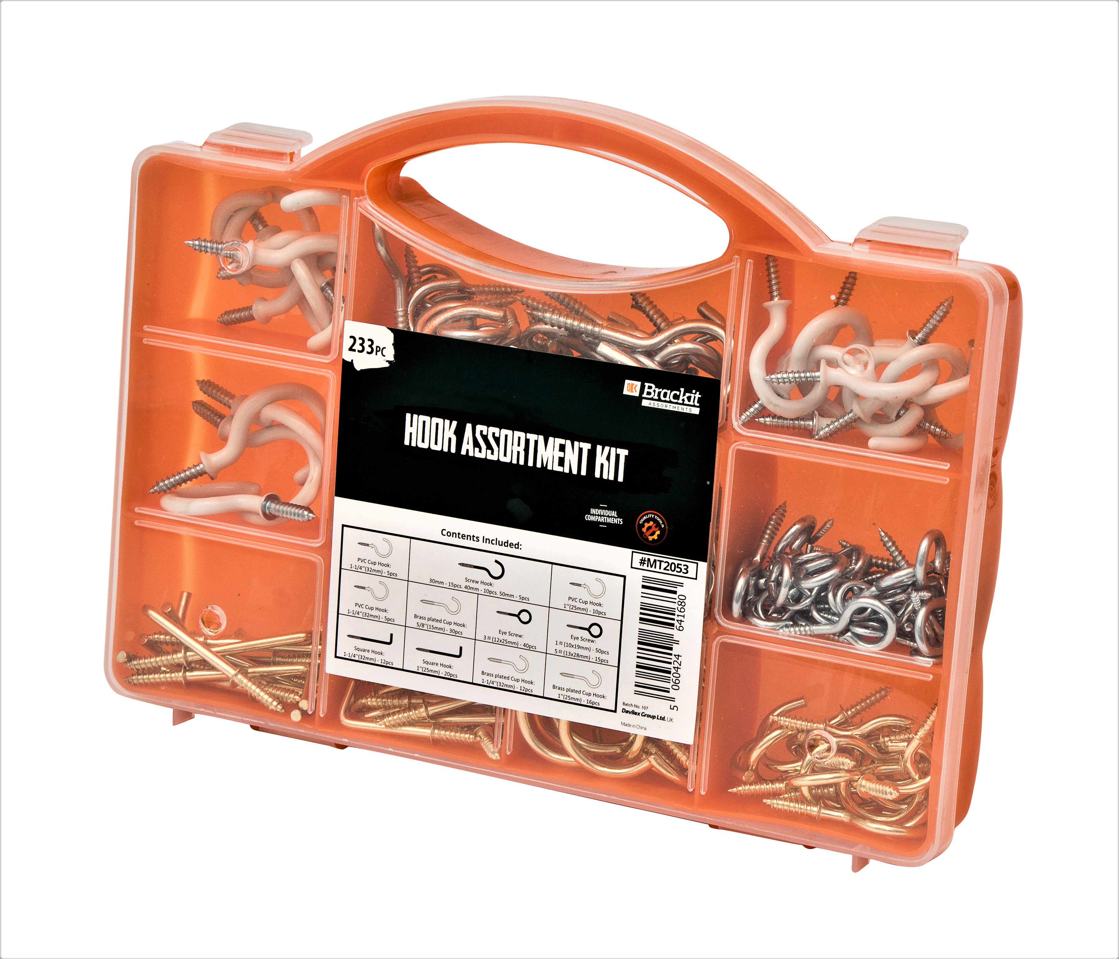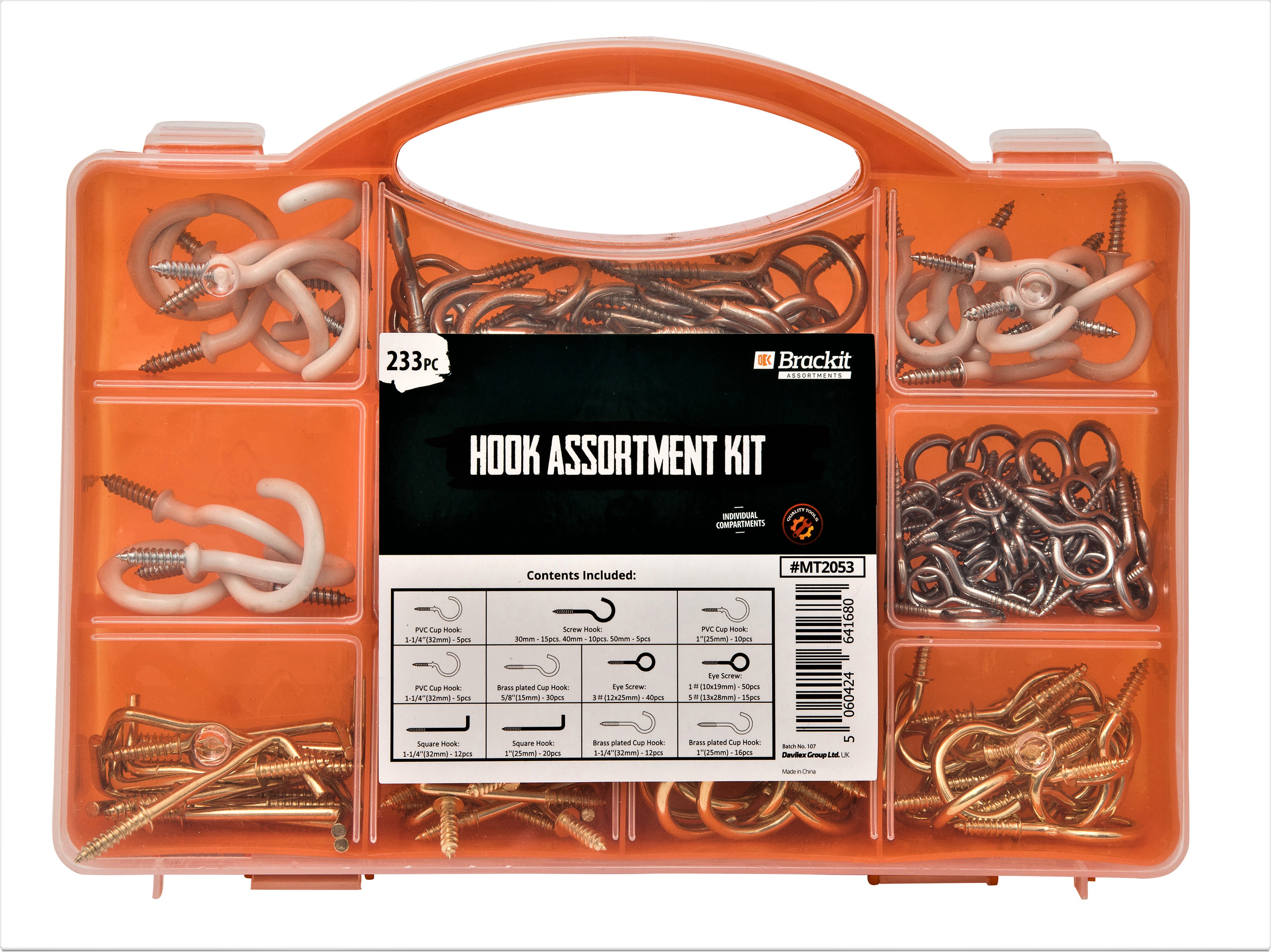 10 packs of brackit 233 Piece Hook Assortment – Including PVC Cup Hooks, Square Hooks, Eye Hooks and Screw Hooks – for DIY and Home Décor Projects