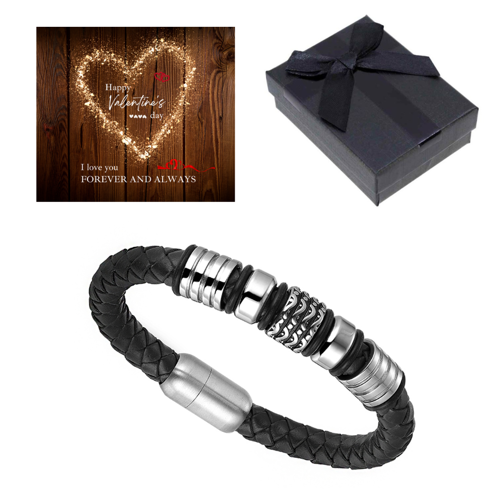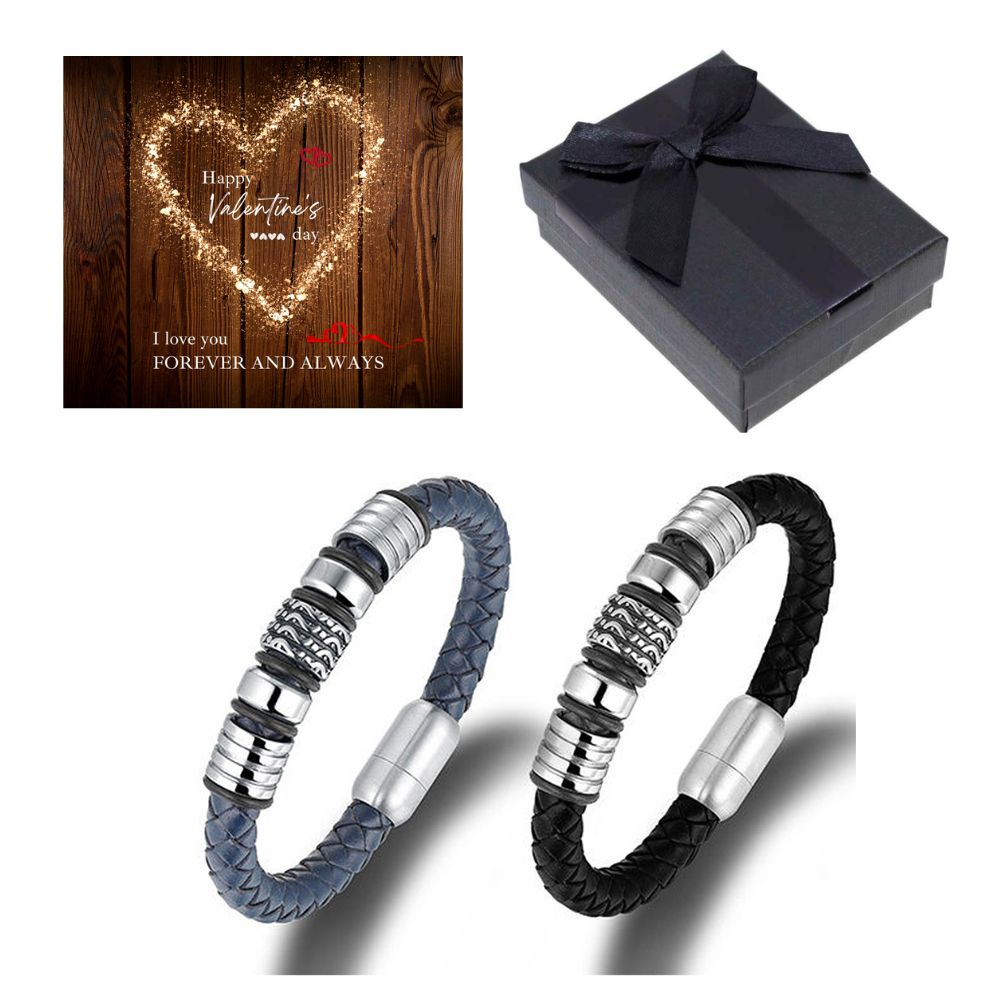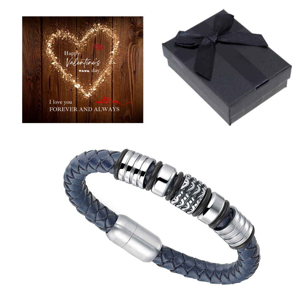 10 pcs - Men’s Genuine “HONOUR” Bracelet in Blue or Black Leather with Titanium Beads with Valentine’s Message Gift Box - Random Colour|GCJ044