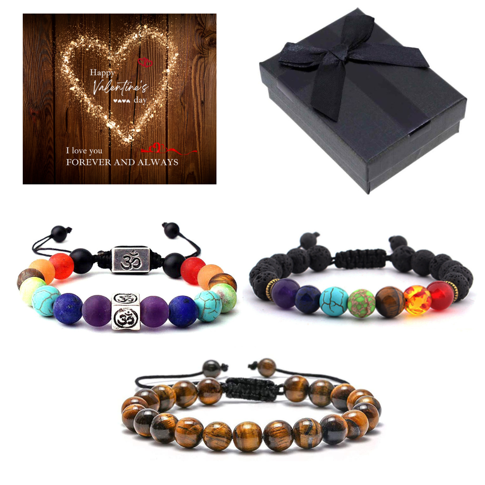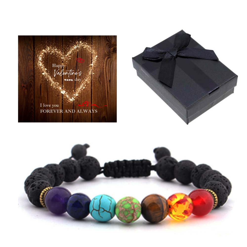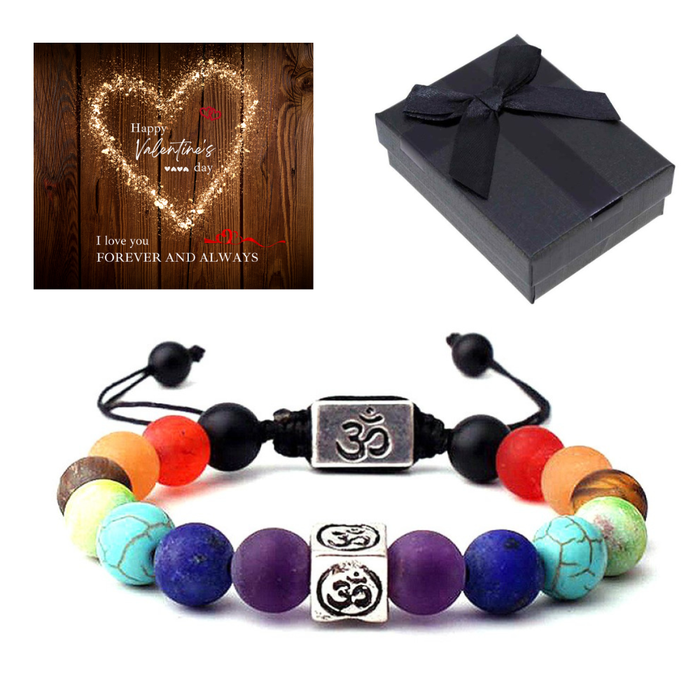 10 pcs - Unisex Seven Chakra Energy Stone Bracelet Pull Cord Adjustable with Valentine’s Message Gift Box - Random Style|GCJ212-1/2/3 +ValentinesBox