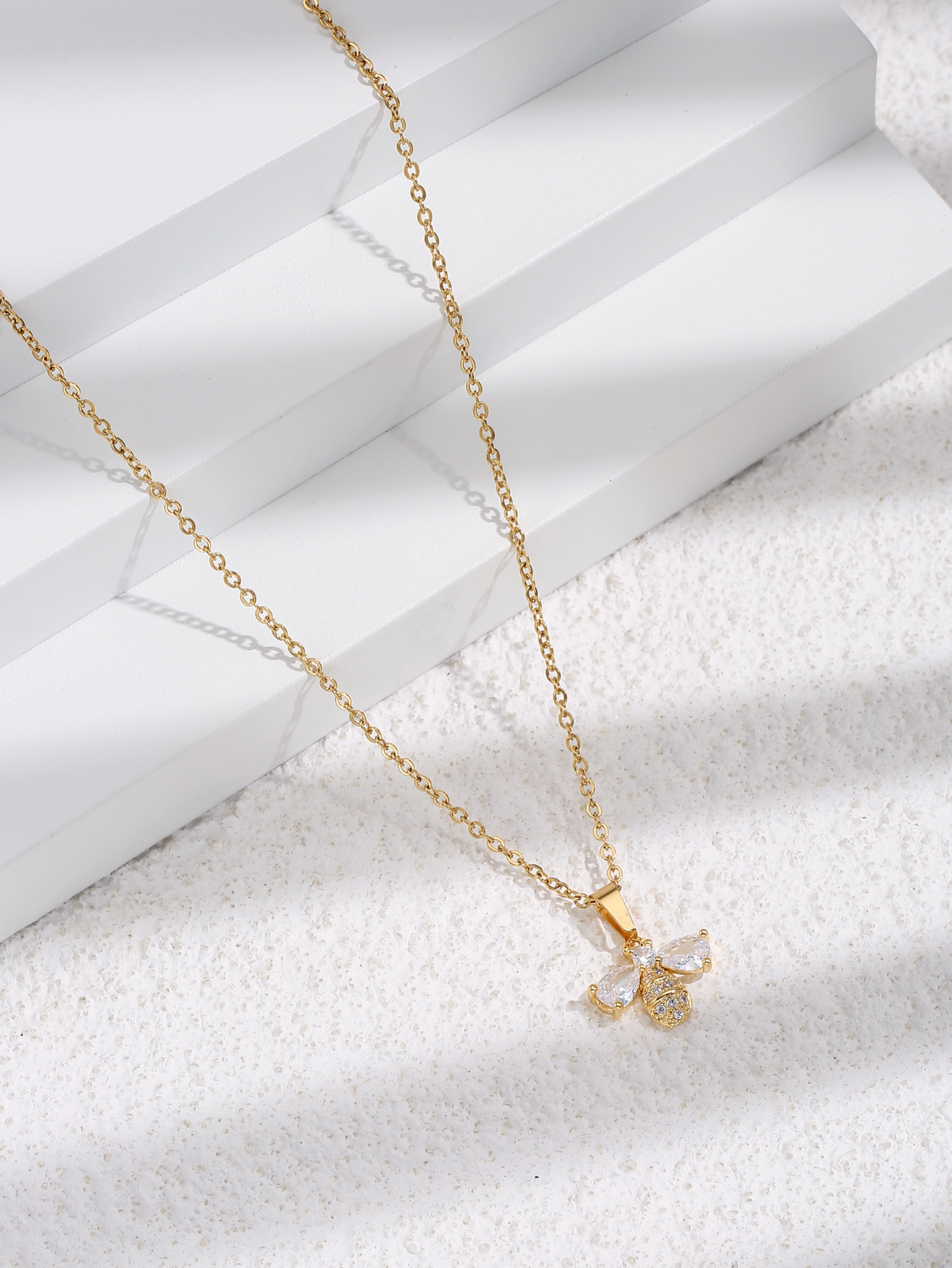10 pcs - Bee Design Zircon Crystal Gold Plated Pendant Necklace|GCJ392|UK SELLER