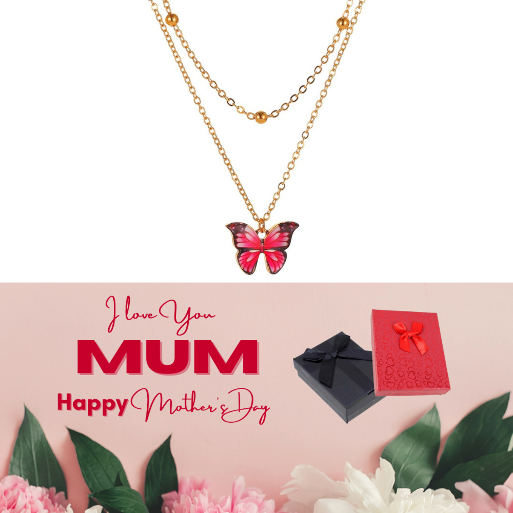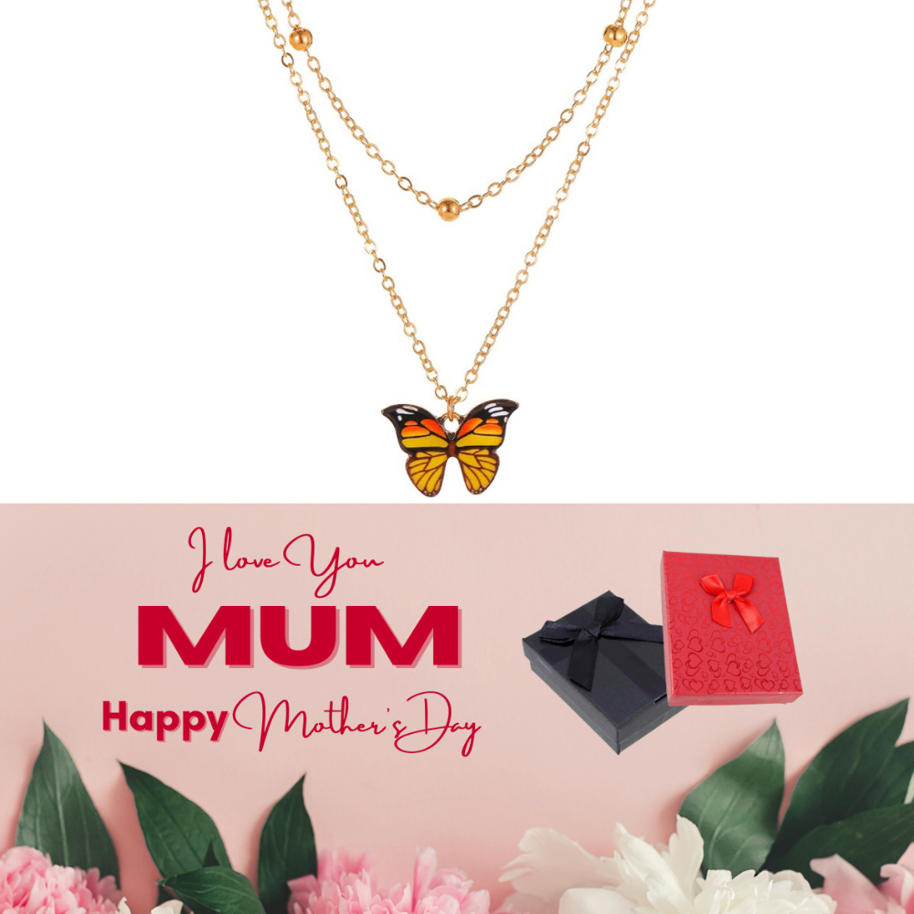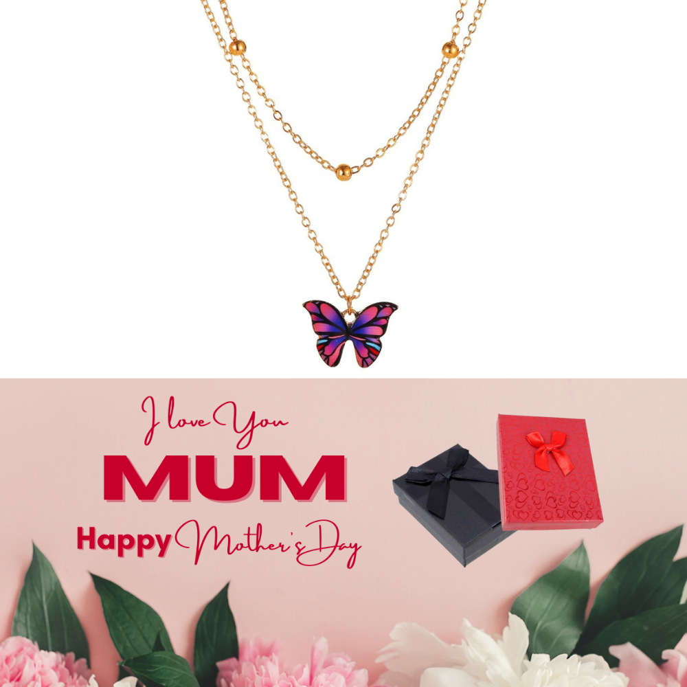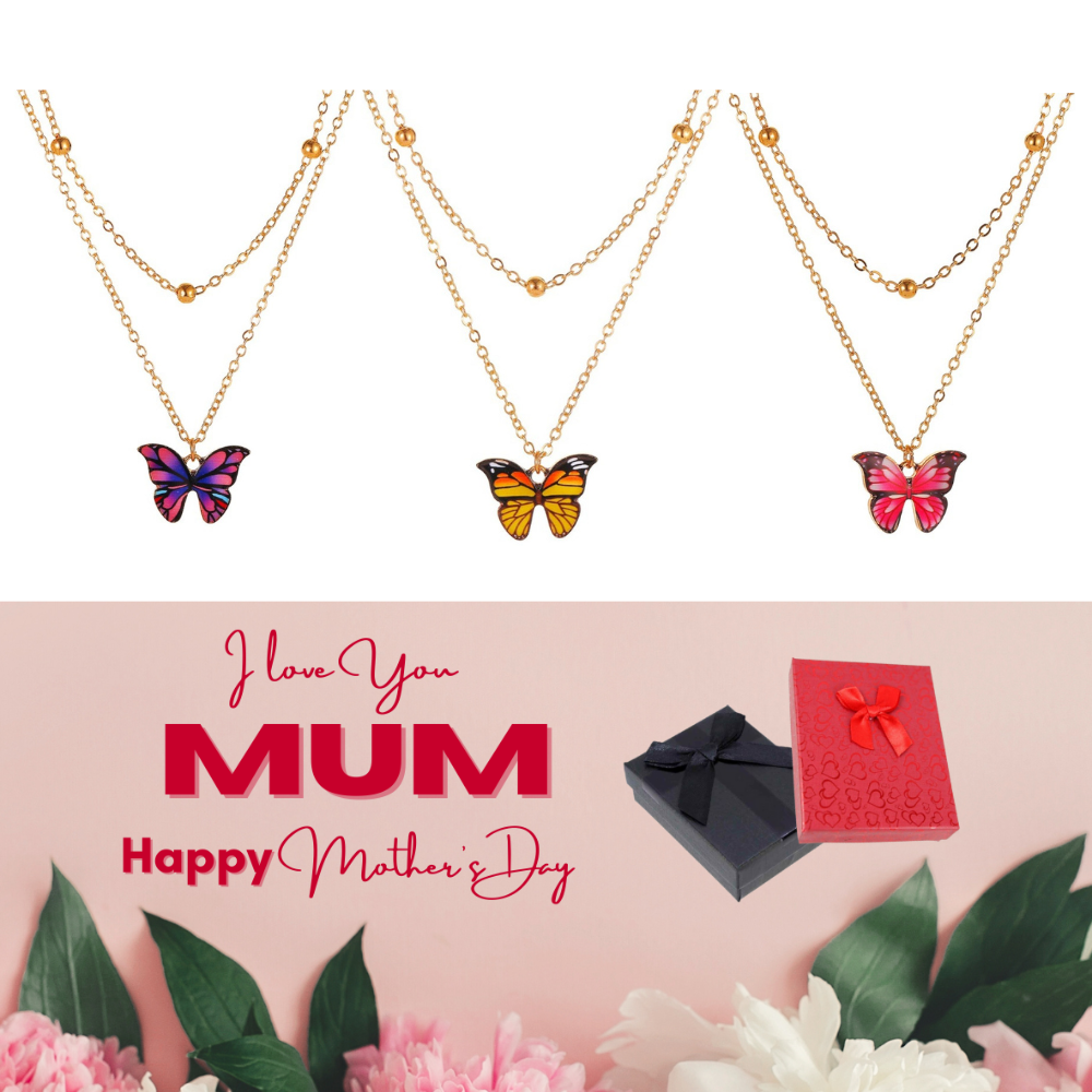 10 pcs - Butterfly Gold Tone Layered Pendant Necklace + Mother’s Day Message Gift Box - Random Colour|GCJ245-Yellow/Red/Purple-MD|UK SELLER