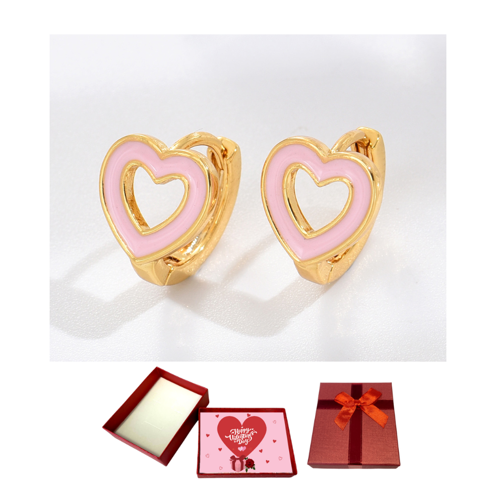 Reviews for 10 pcs - Pink Enamel Love Heart Huggie Hoop Gold Plated Earrings With Valentine Gift Box|GCJ388-Valentine Box|UK SELLER