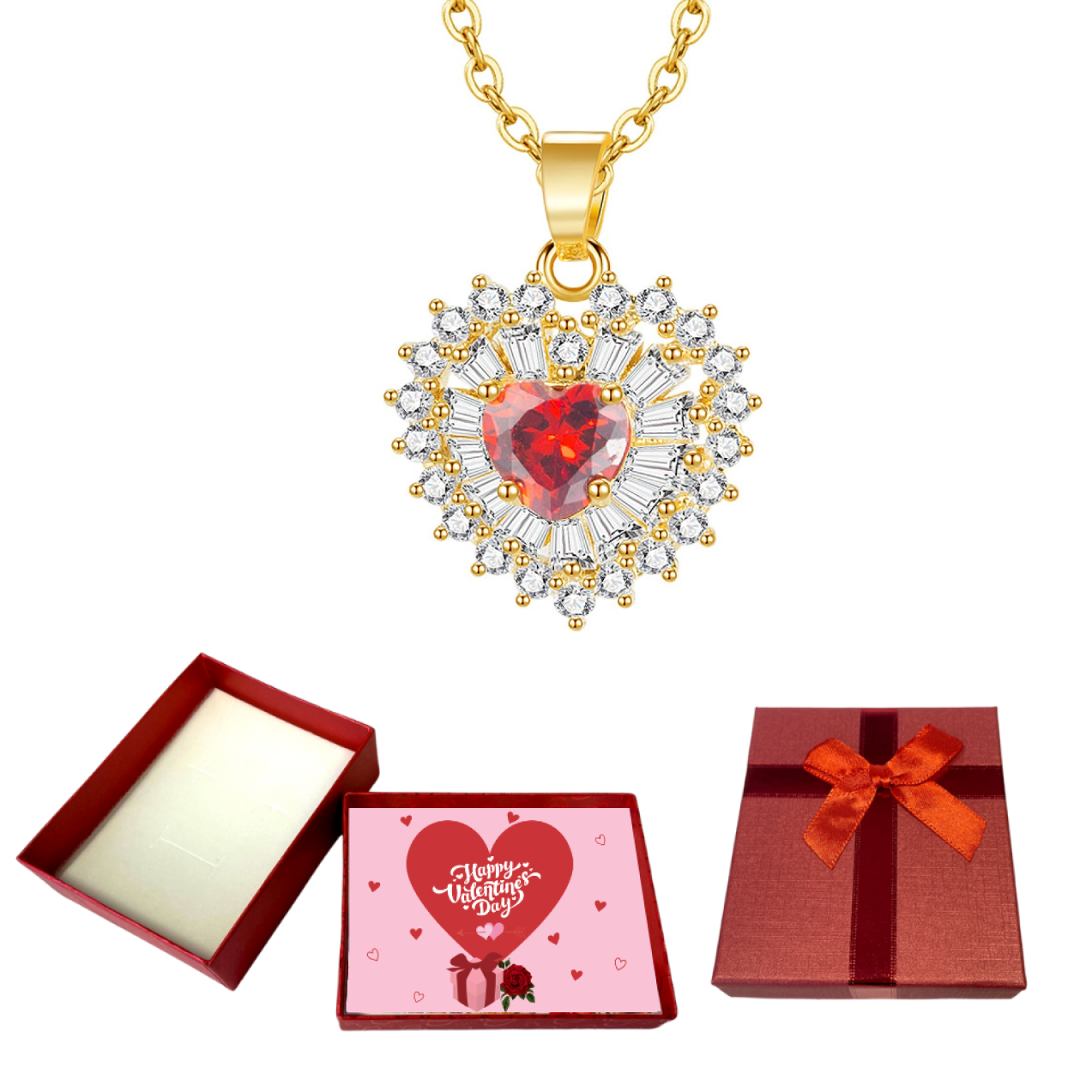 10 pcs - Red Ruby Zircon Crystals Love Heart-Shaped Gold Tone Pendant Necklace With Valentine Gift Box|GCJ293-Valentine Box|UK SELLER