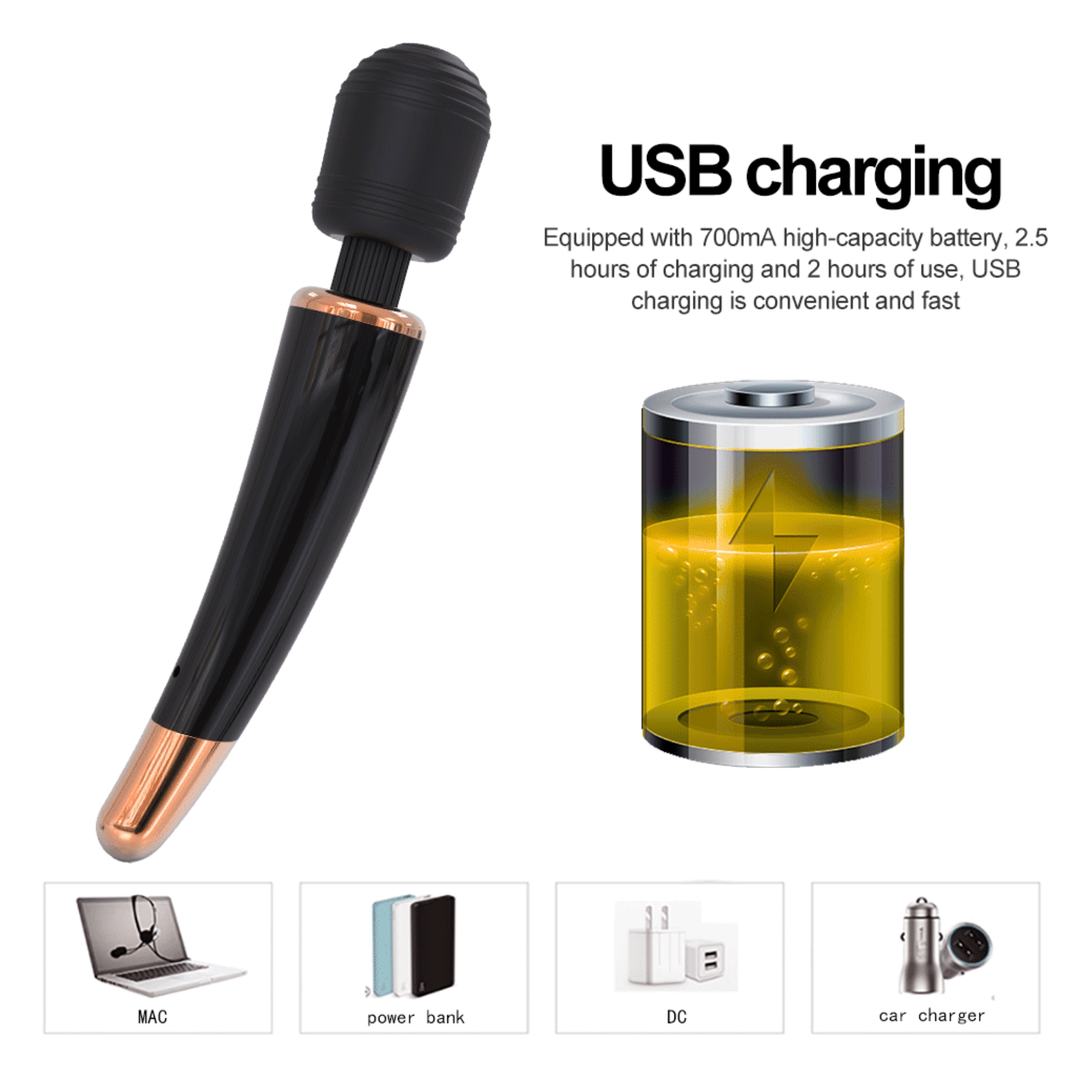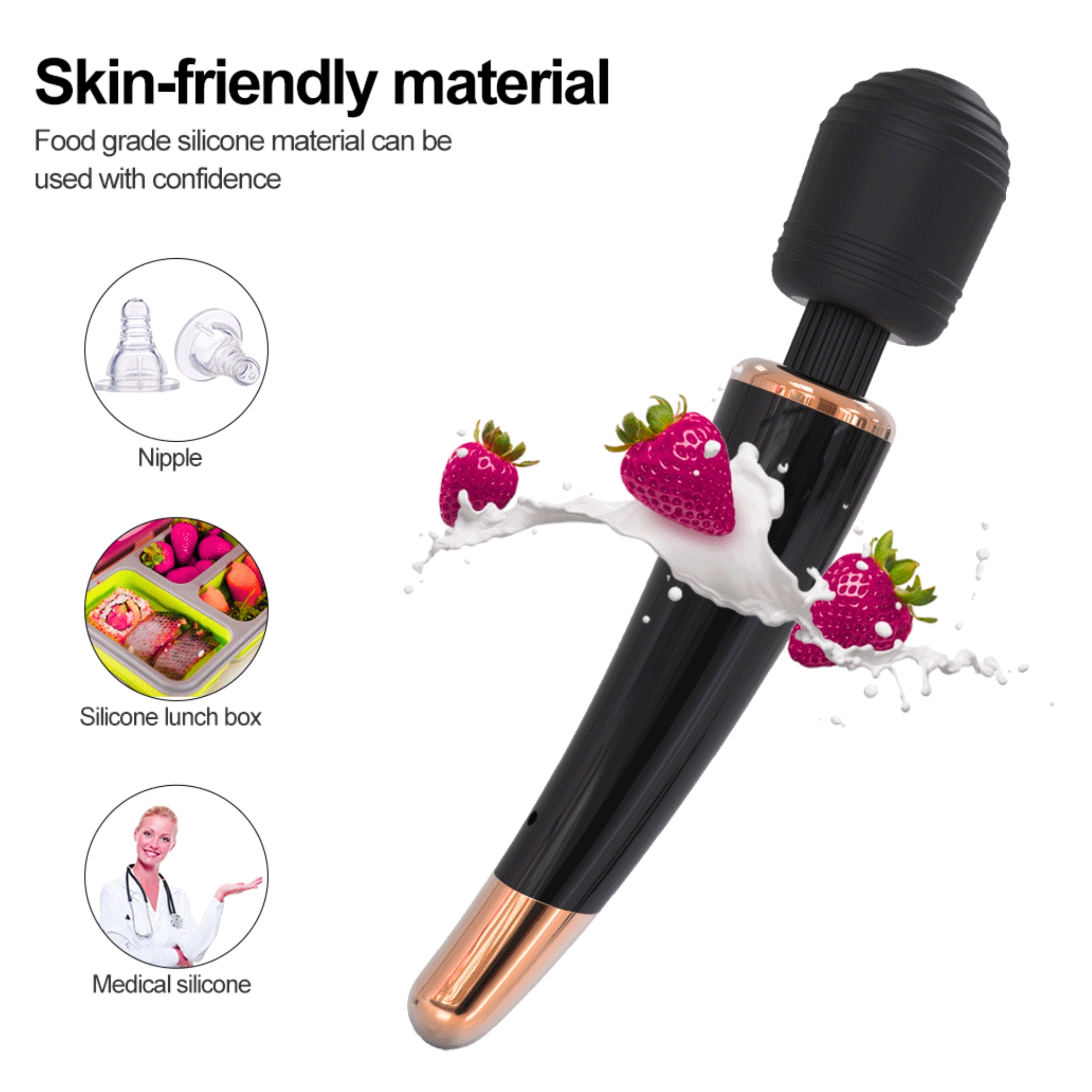- 1x Magic Wand: 12 modes, food-grade silicone, waterproof (269mm x 50mm).