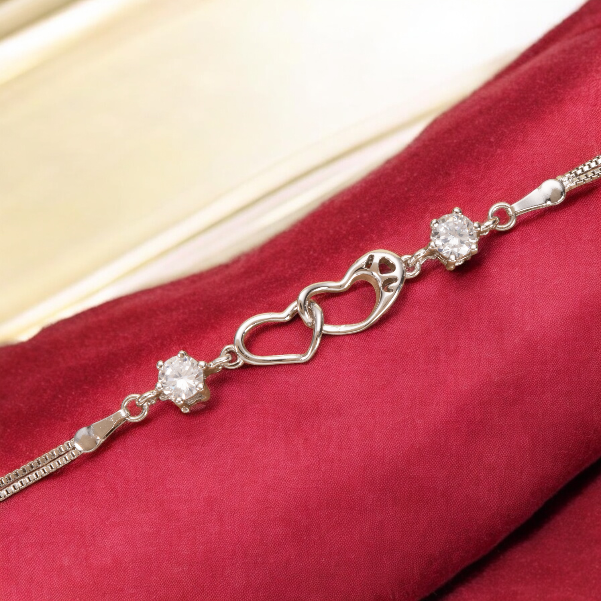 Gift your Granddaughter the dazzling Bracelet. This elegant bracelet features two intertwined hearts, beautifully symbolising the special and unbreakable connection you share with her. A constant reminder of your love. It is the perfect ready-to-give gift, presented in a luxury jewellery box and gift bag, complete with a mini note card and heartfelt messageāa beautiful symbol of your lasting bond.