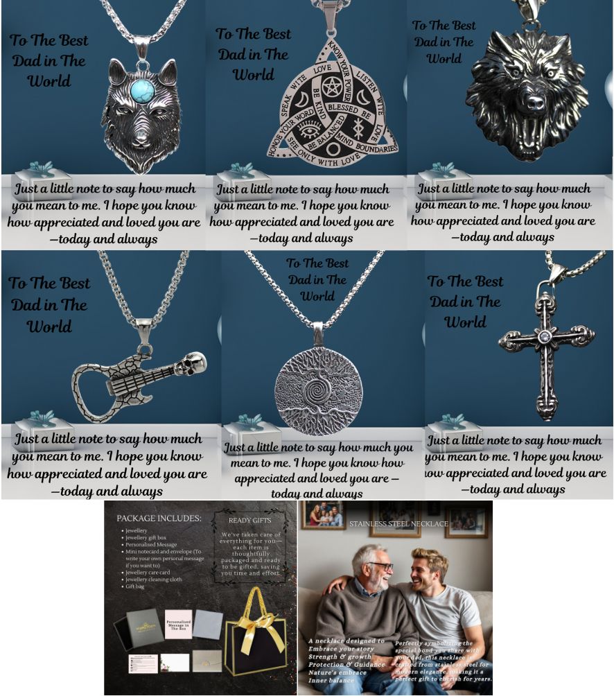 10 Sets-Father’s Day Gifts Men’s Compass Evil Eye Wolf Stainless Steel Pendant Necklace-Mixed|GCJ569GCJ571GCJ580GCJ586GCJ595GCJ599-Dad Note-10 set