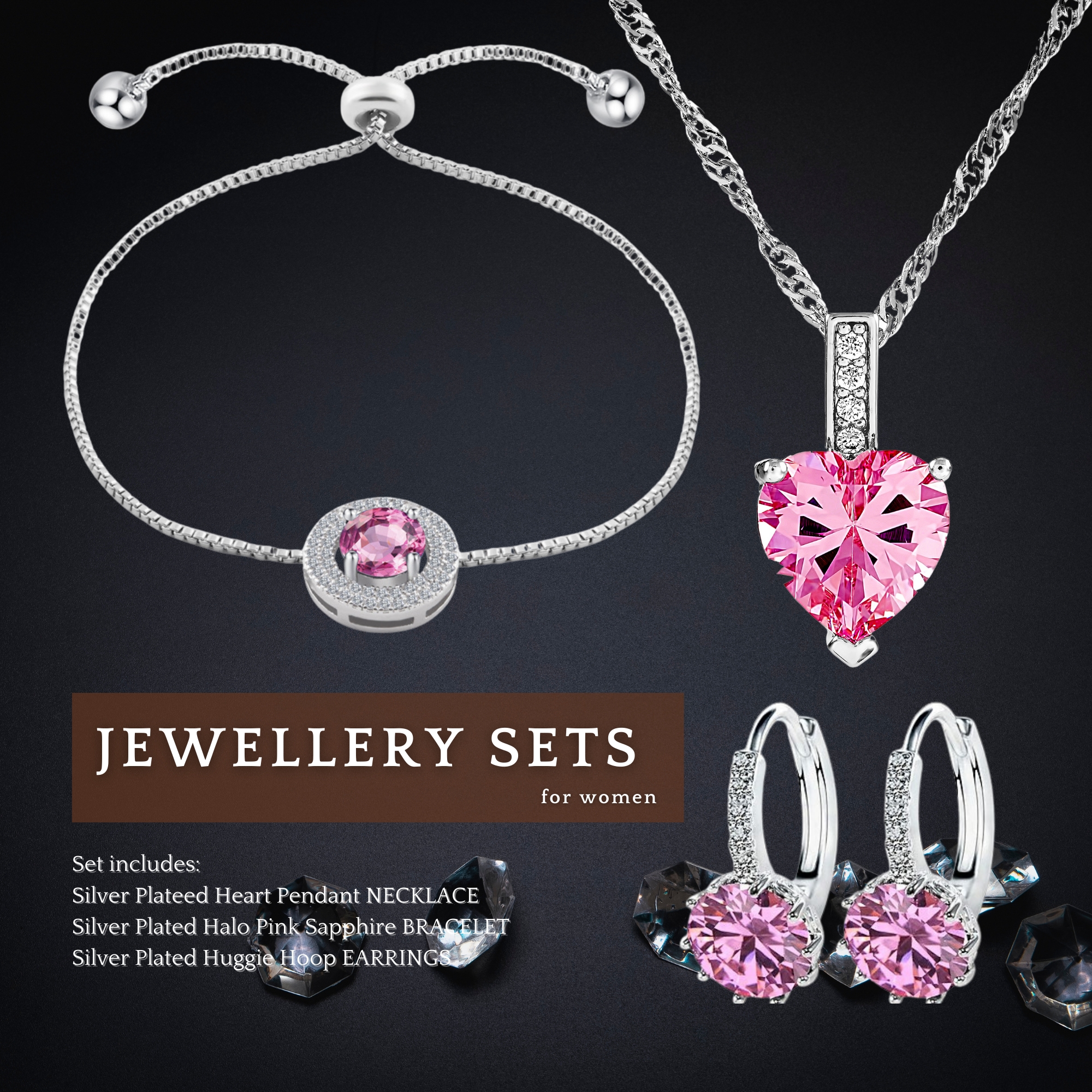 Gift your daughter the dazzling Eternal Love Pink Crystal Set. This complete silver-tone collection features a stunning pink heart pendant necklace, matching huggie earrings, and an adjustable crystal bolo bracelet. It is the perfect ready-to-give gift, presented in a luxury jewellery box and gift bag, complete with a mini note card and heartfelt messageāa beautiful symbol of your lasting bond.