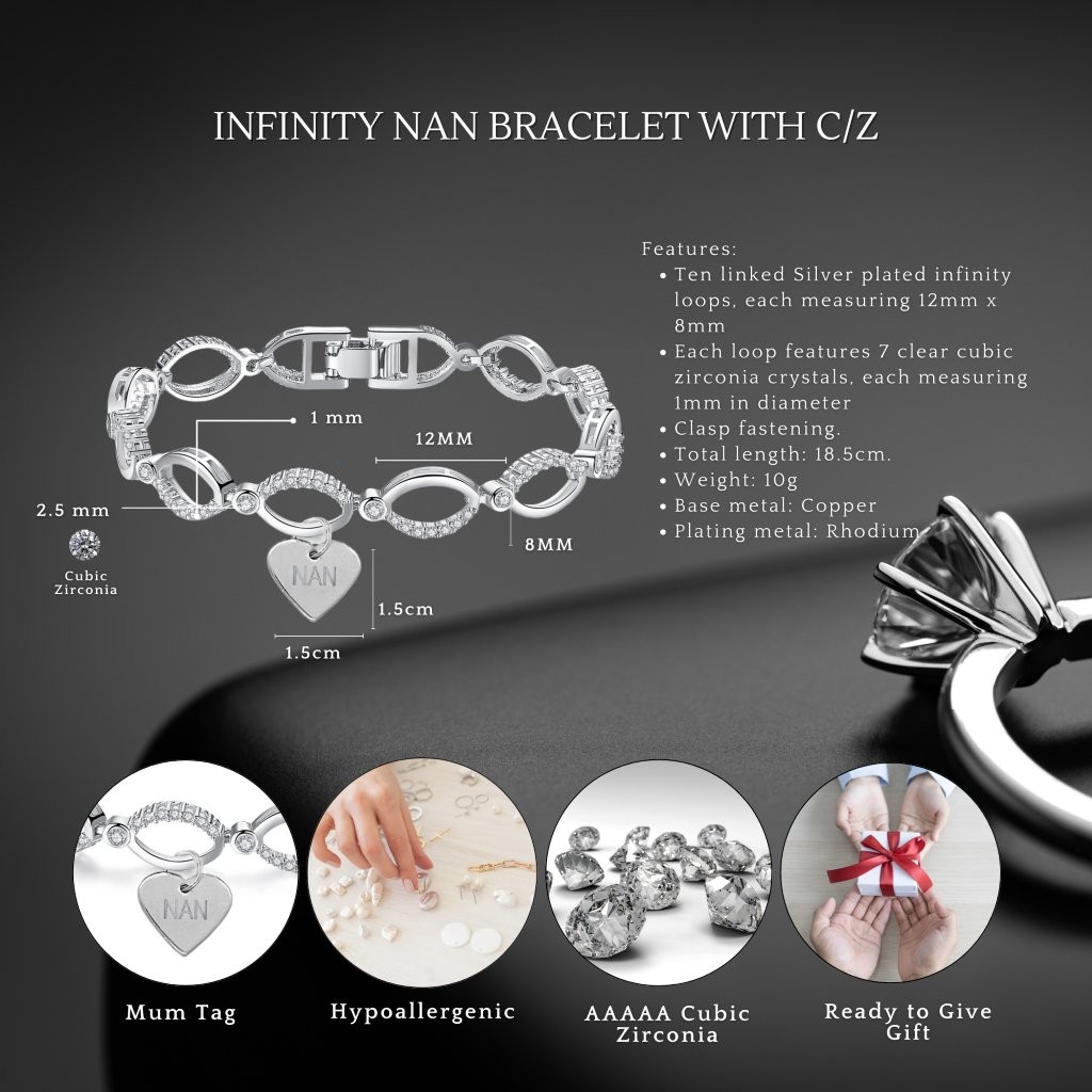 - Infinity Design: Symbolising everlasting love through its meaningful infinity design, this bracelet represents your special bond with your Nan, a precious keepsake she will surely treasure for years.