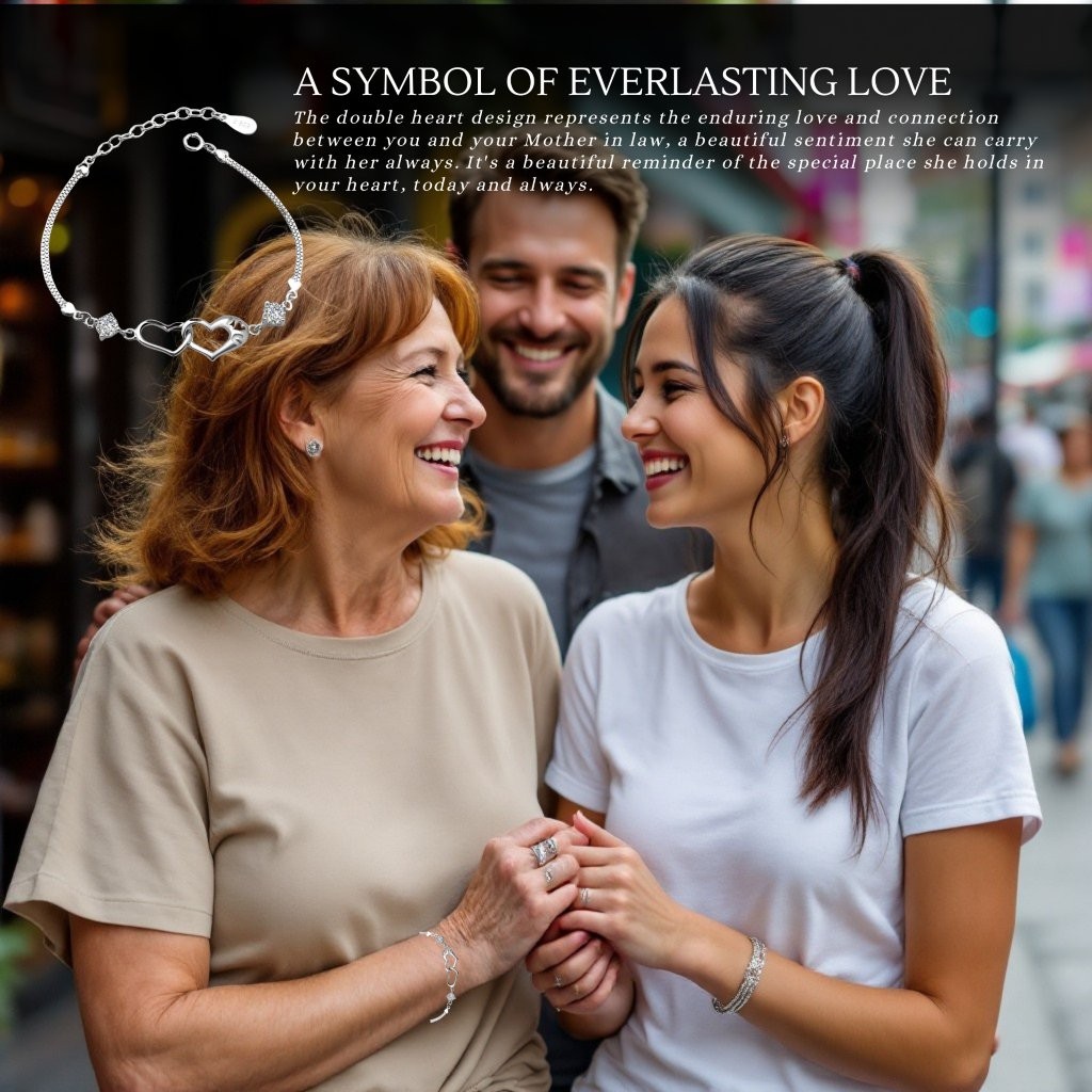 - Two Hearts, One Love: This elegant bracelet features two intertwined hearts, beautifully symbolizing the special and unbreakable connection you share with her. A constant reminder of your love.