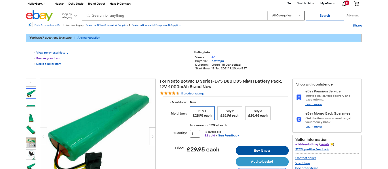 Reviews for 10 x For Neato Botvac D Series-D75 D80 D85 NiMH Battery Pack 12V 4000mAh Brand New