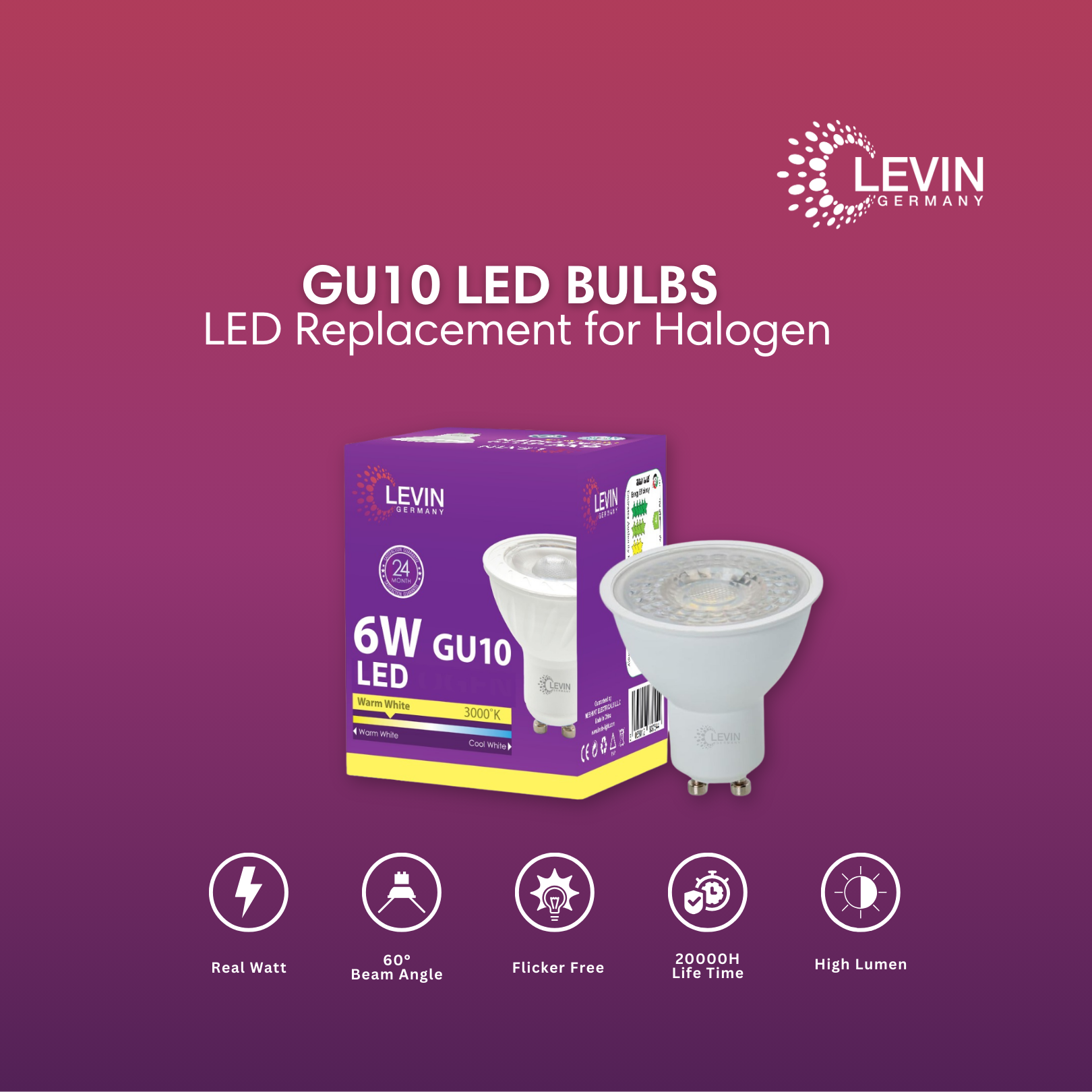 Reviews for 100 GU10 LED Bulbs (10 x 10-Pack), Levin 6W, Warm White 3000K, Non-Dimmable, Flicker-Free, 60° Beam Angle, Energy Efficient Spotlight Bulbs