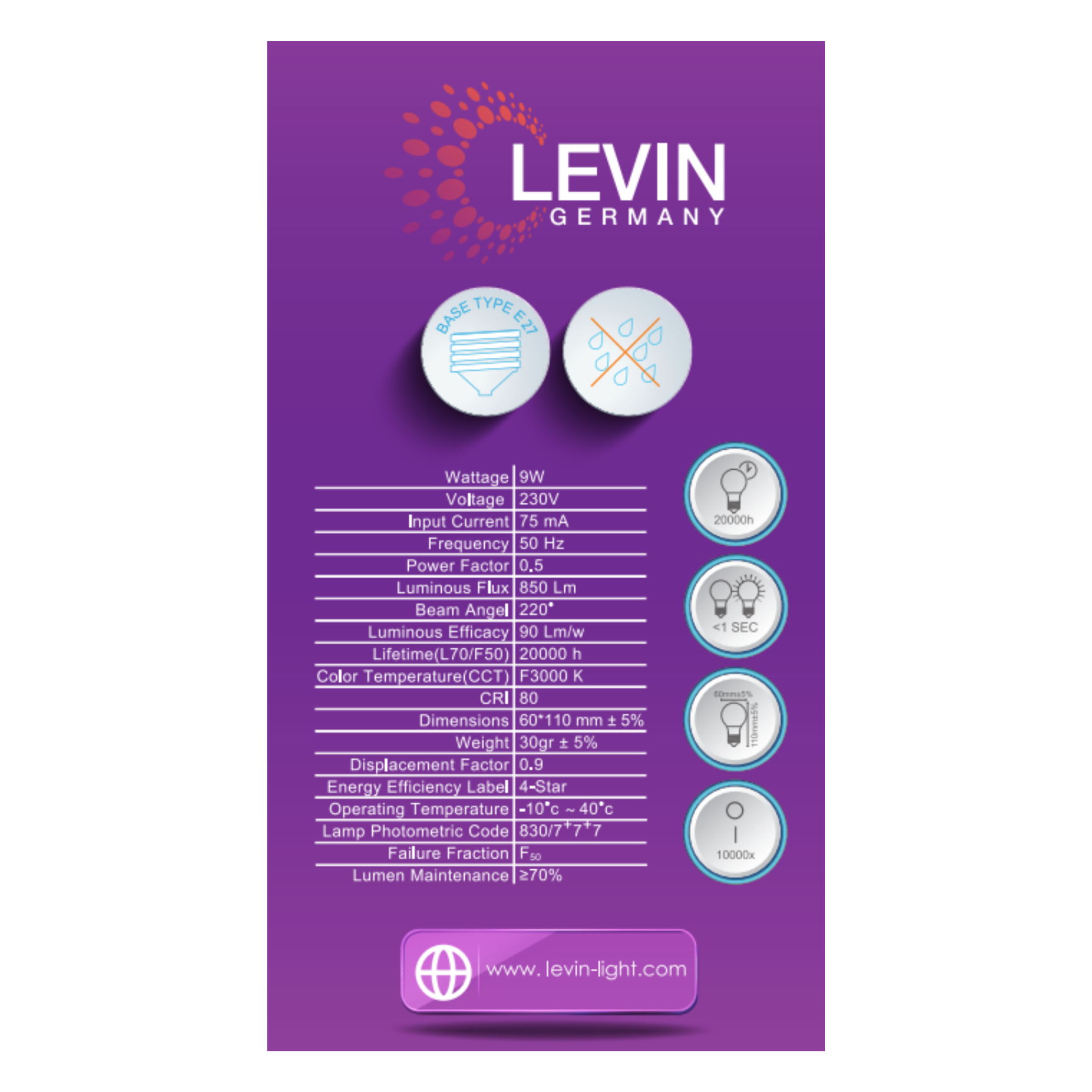 Reviews for 100 x Levin 9W A60 LED Bulbs – Dimmable, Warm White 3000K, E27 Edison Screw, 850 Lumens, 60W Replacement (20 Packs of 5)