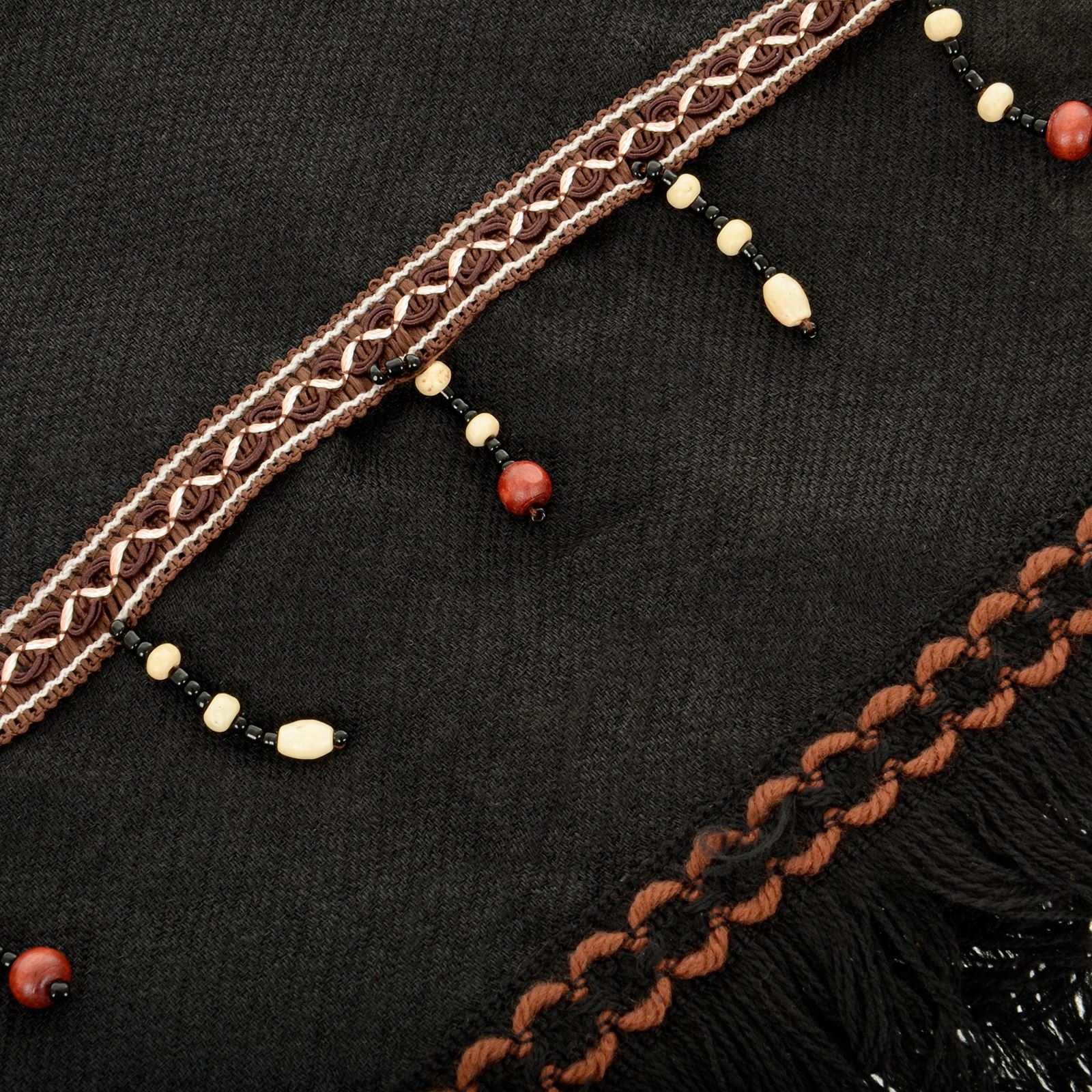 Elegant Design: Features a sophisticated black color with a decorative beaded trim and a 5cm fringed edge, ideal for evening events or casual chic.