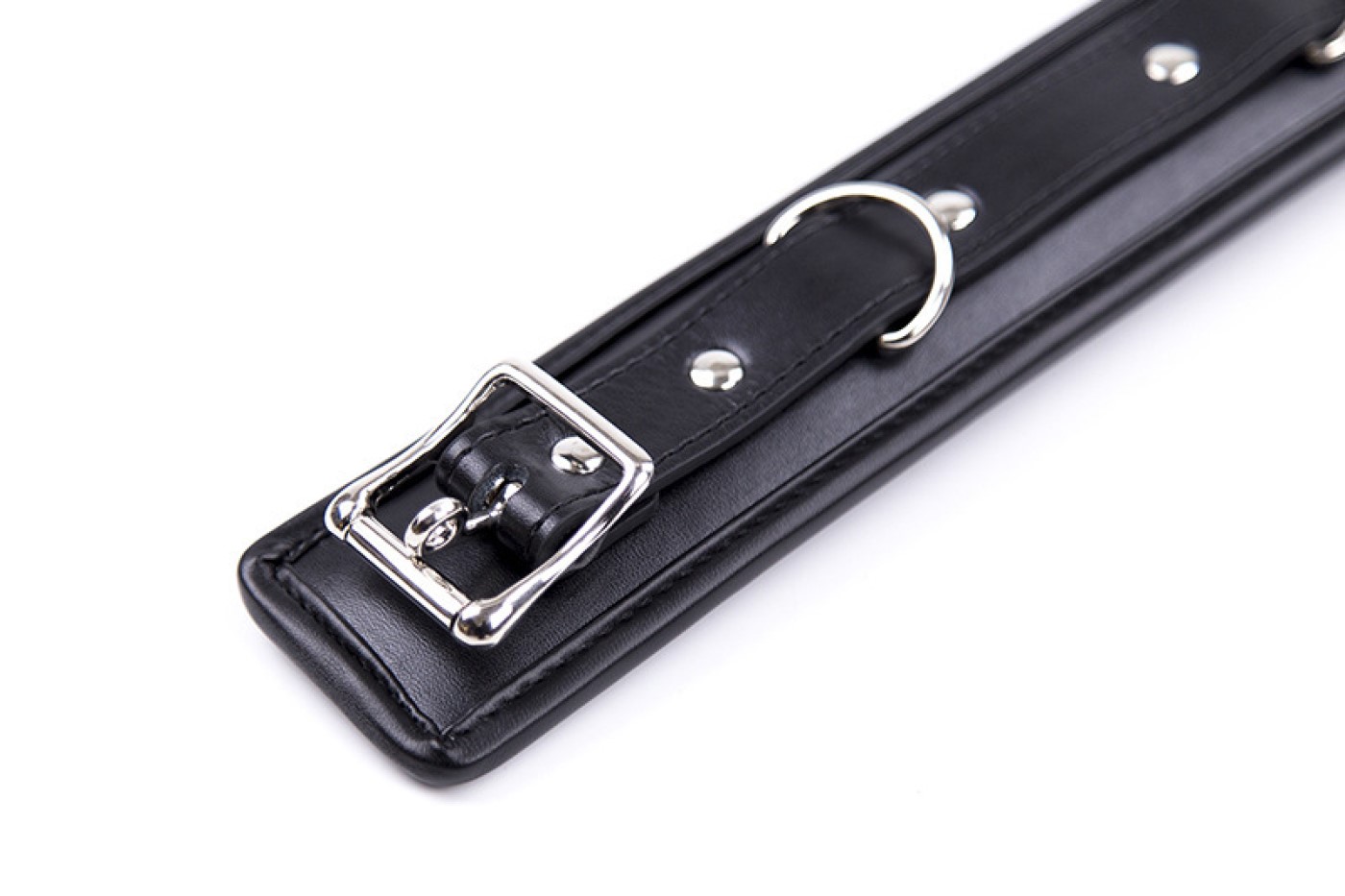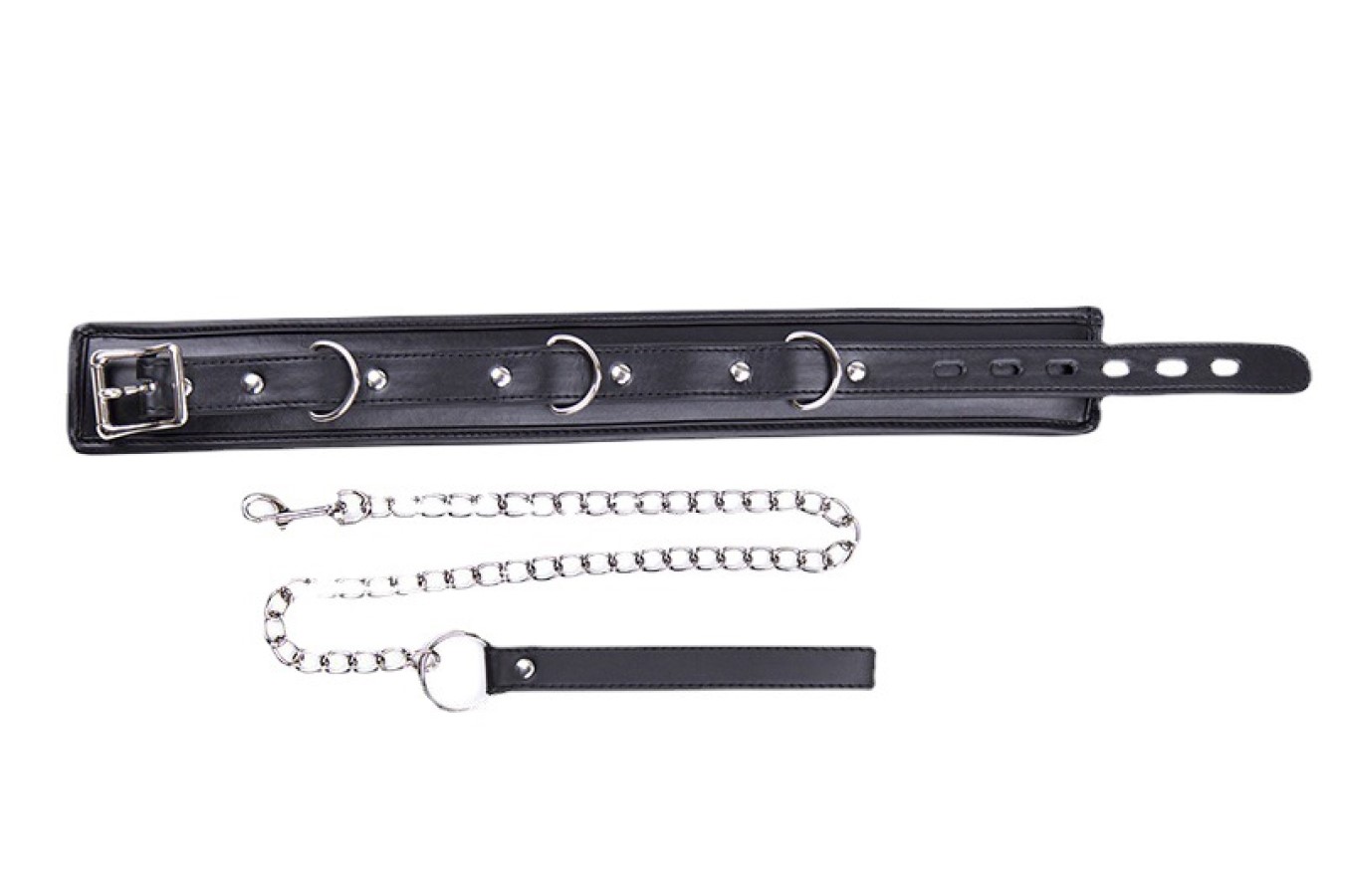 - Ensure your submissive playmate is always by your side with the Bondara Premium Padded leathert Collar with Black Leash. This stunning set features a High quality leather collar with contrasting. Use the adjustable strap to find the perfect fit before securing in place with the buckle fastening. Take hold of the coordinating wrist loop and remind your sub who’s in charge by giving a sharp tug on the leash. Connected by a trigger hook clasp, the chain can quickly and easily be detached for versatile bondage play.