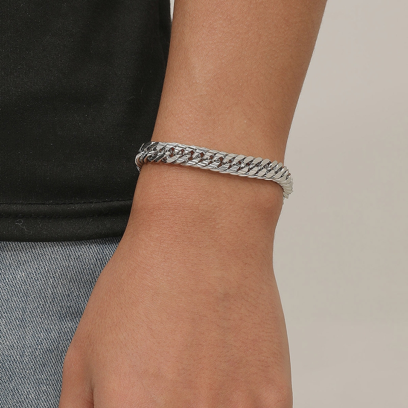 10pcs - Men Lobster Clasp Double Curb Link Bracelet in Silver Tone|GCJ433|UK seller