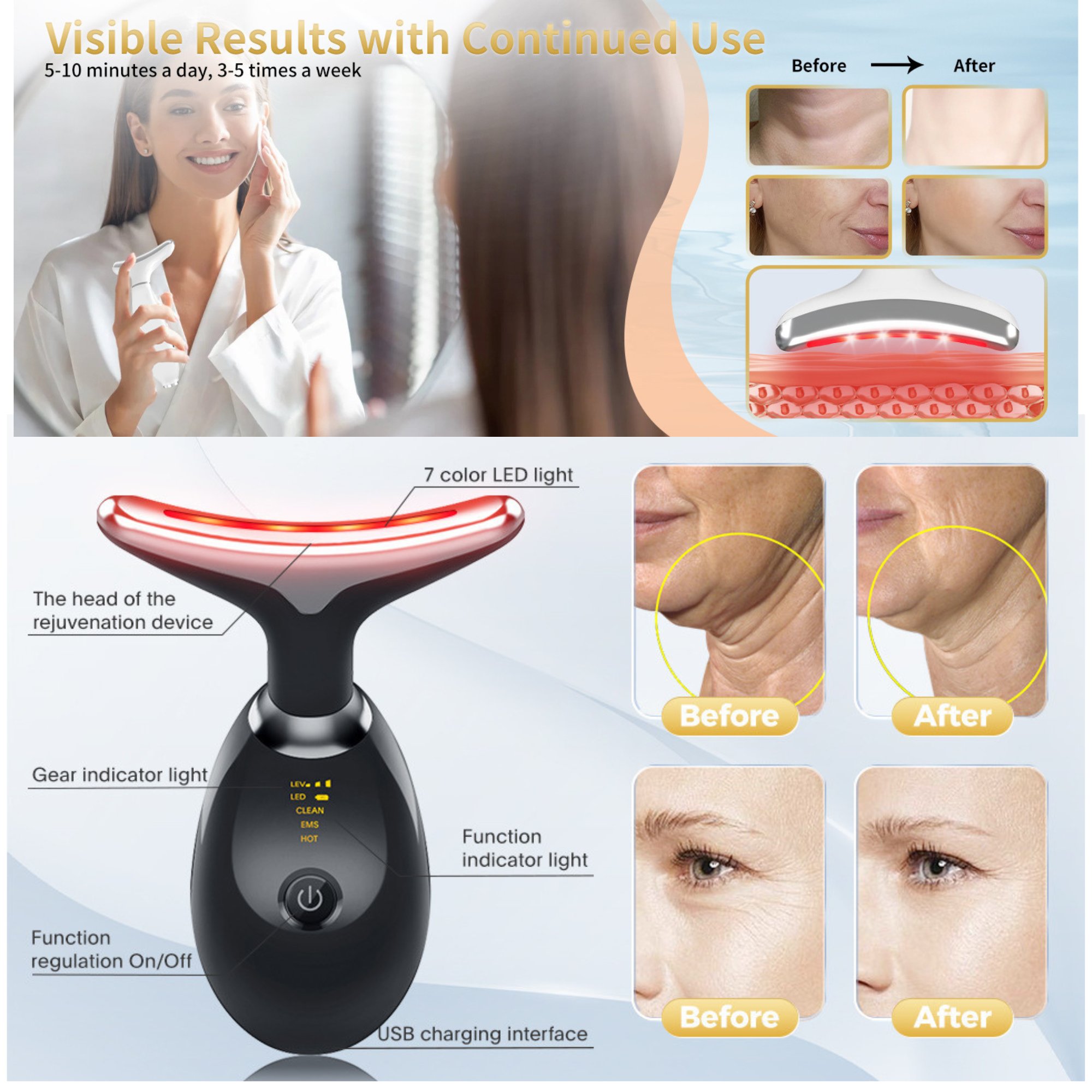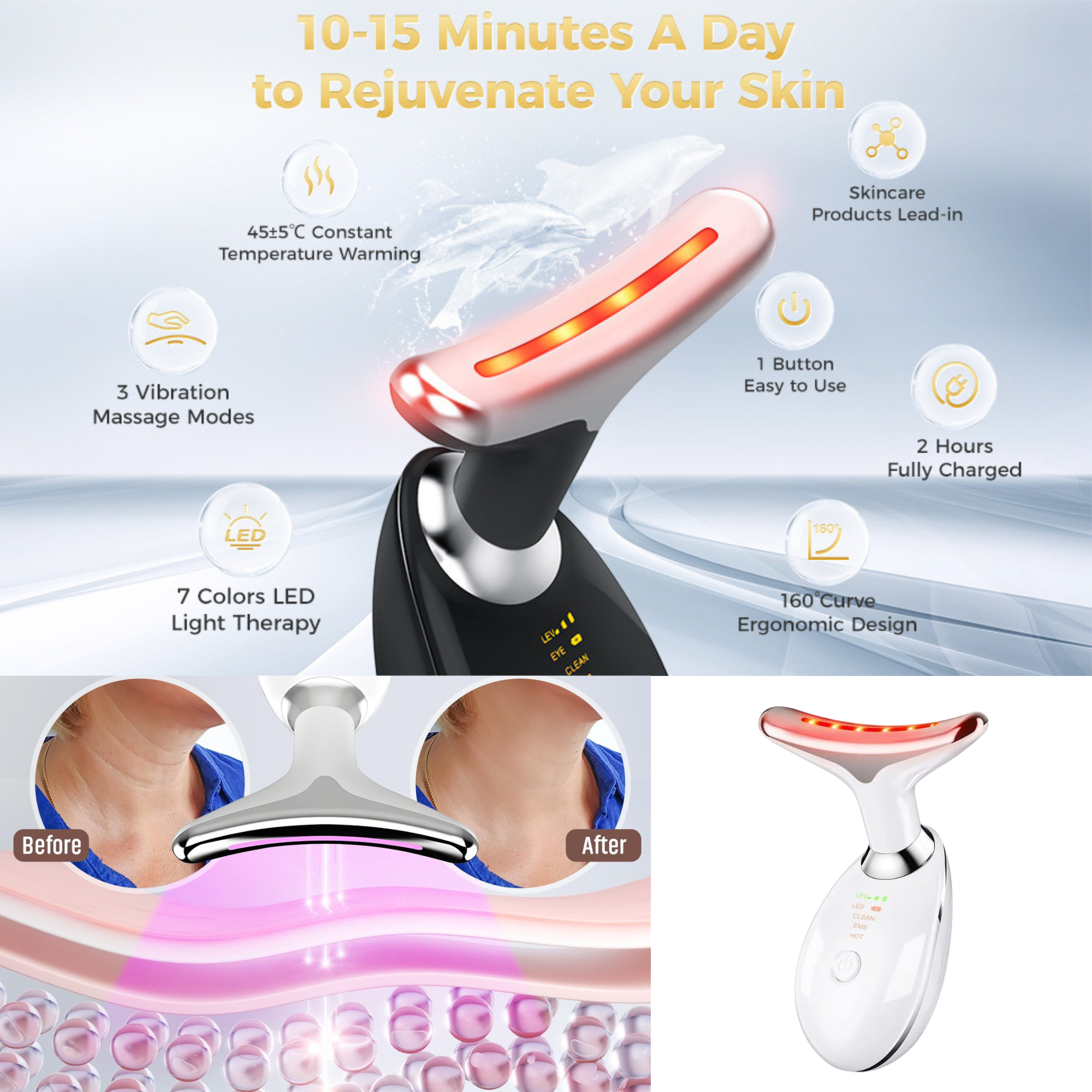 Ergonomic & Portable: Designed to comfortably fit the contours of your face and neck for effortless daily use.