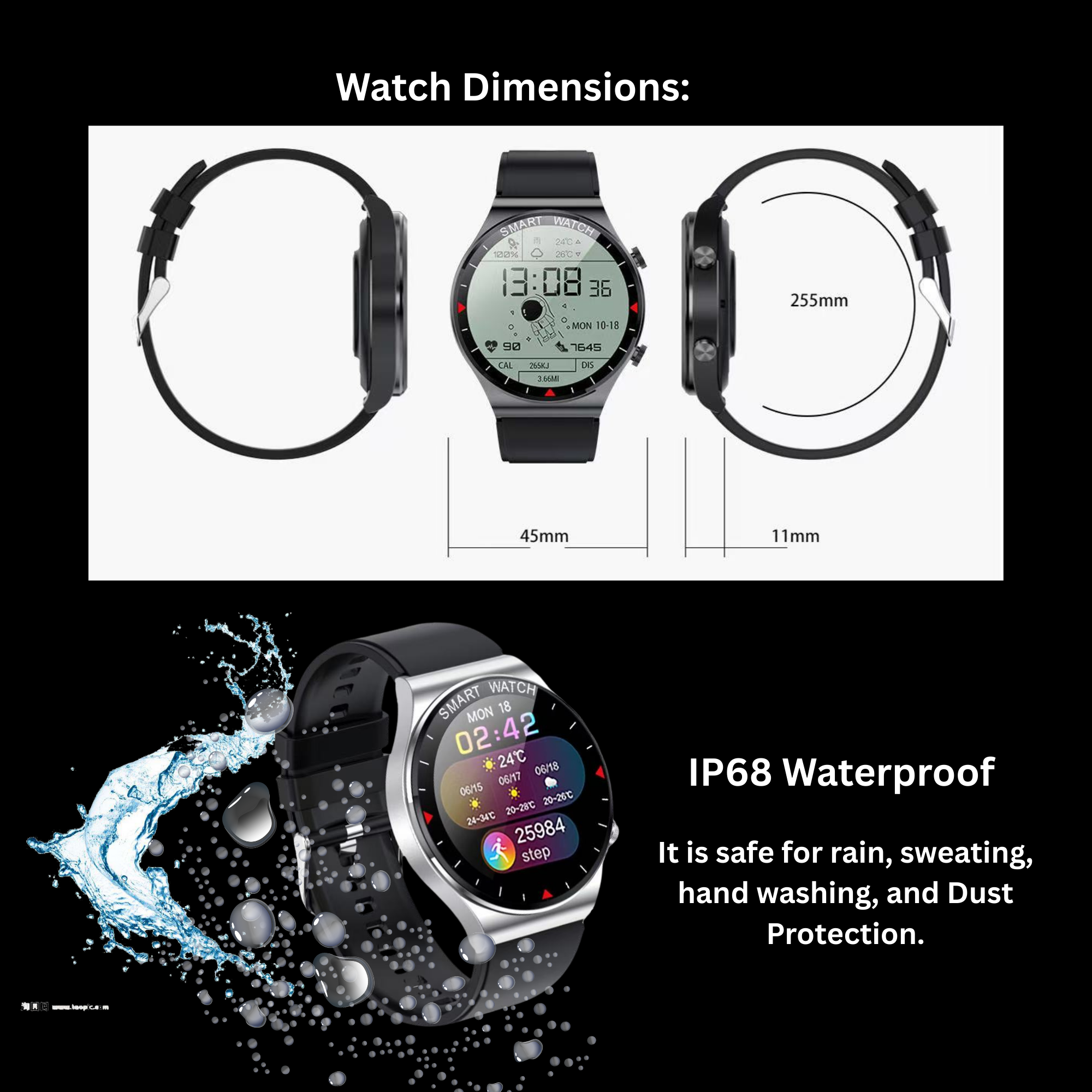 Make and receive calls directly from your wrist with built-in HD speakers and advanced noise-reduction technology. An IP68 rating is one of the highest levels of protection against dust and water. Suitable for hand washing, rain, and daily wear.