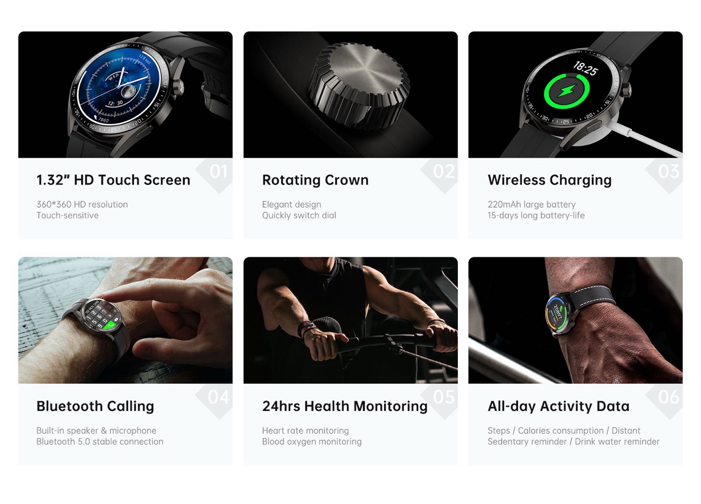 Enjoy smooth, vibrant visuals on a stunning 1.3″ HD display (240 × 240 resolution). Choose from multiple stylish watch faces to match your look. With its slim, lightweight build and modern round design, this smartwatch delivers all-day comfort with a premium feel—perfect for both men and women who value style and performance.