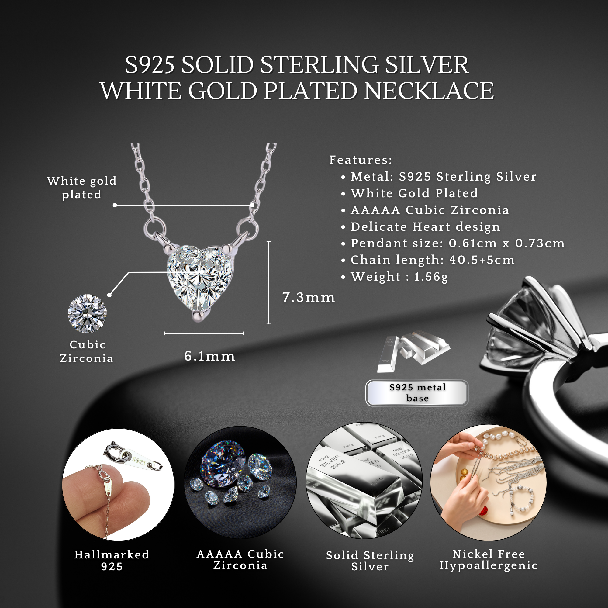 - Crafted with Lasting Quality: Made with genuine S925 sterling silver, this necklace offers enduring shine and quality, a lasting keepsake to treasure through the years. The dazzling cubic zirconia adds a touch of sophisticated sparkle.
