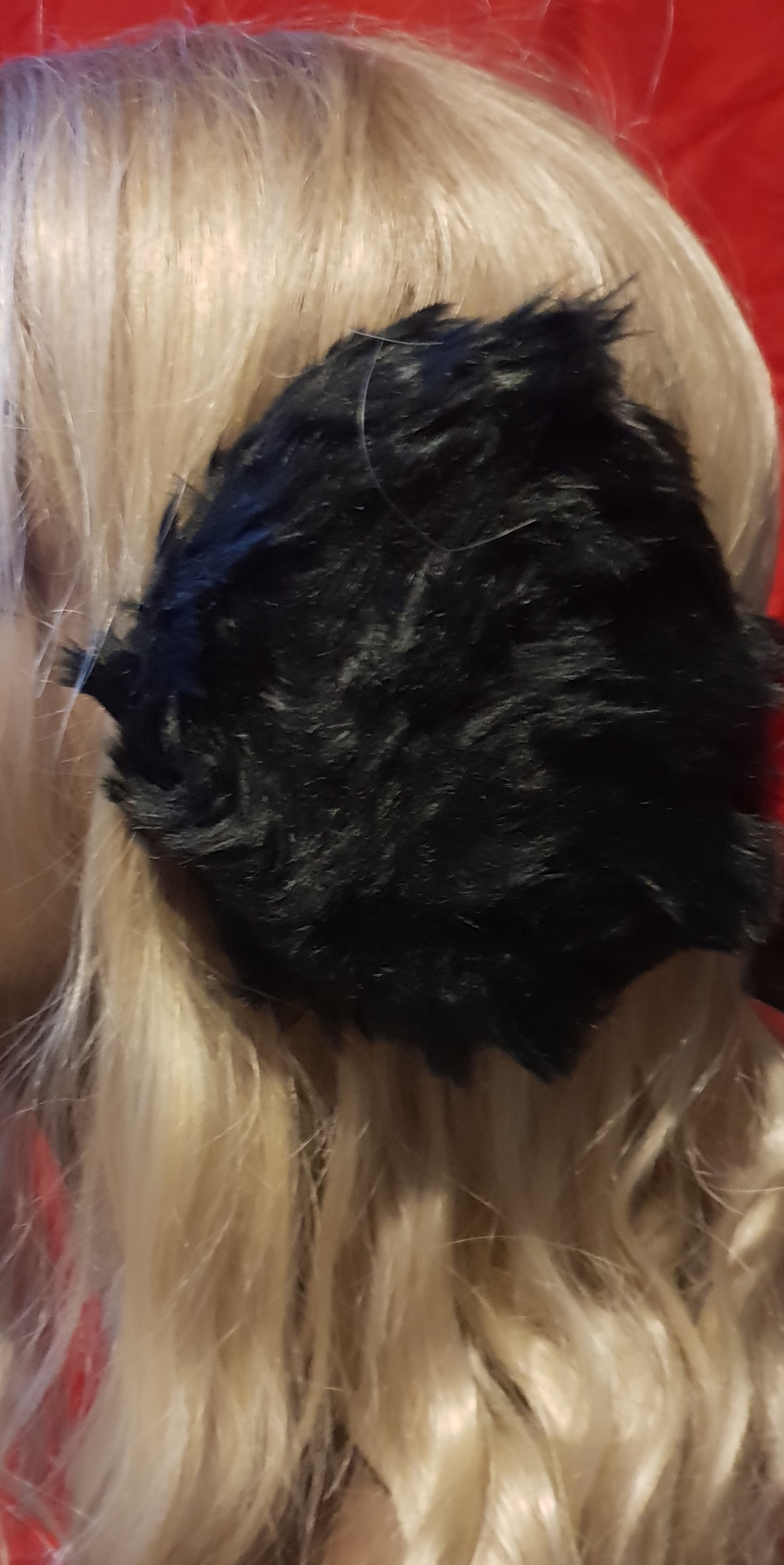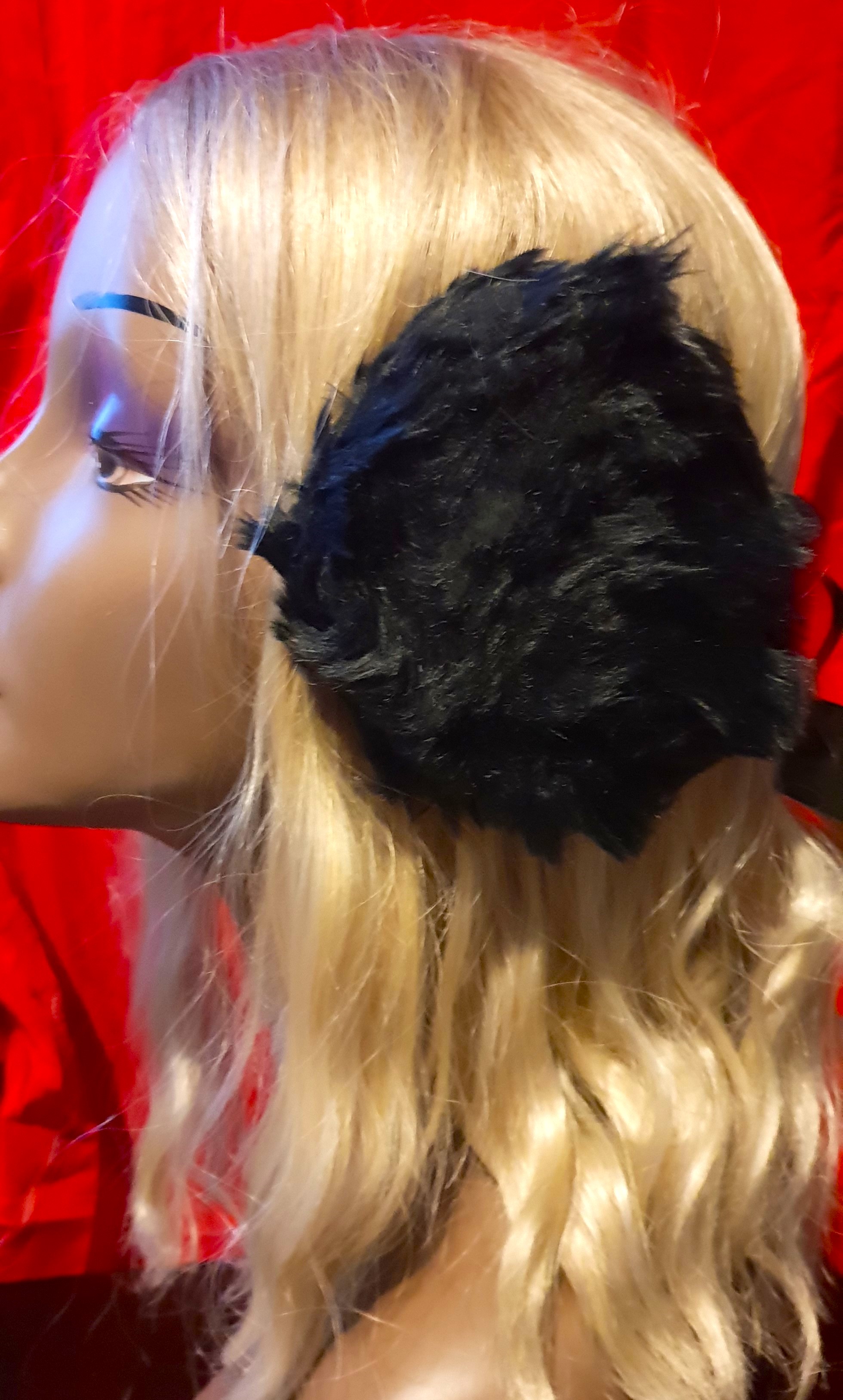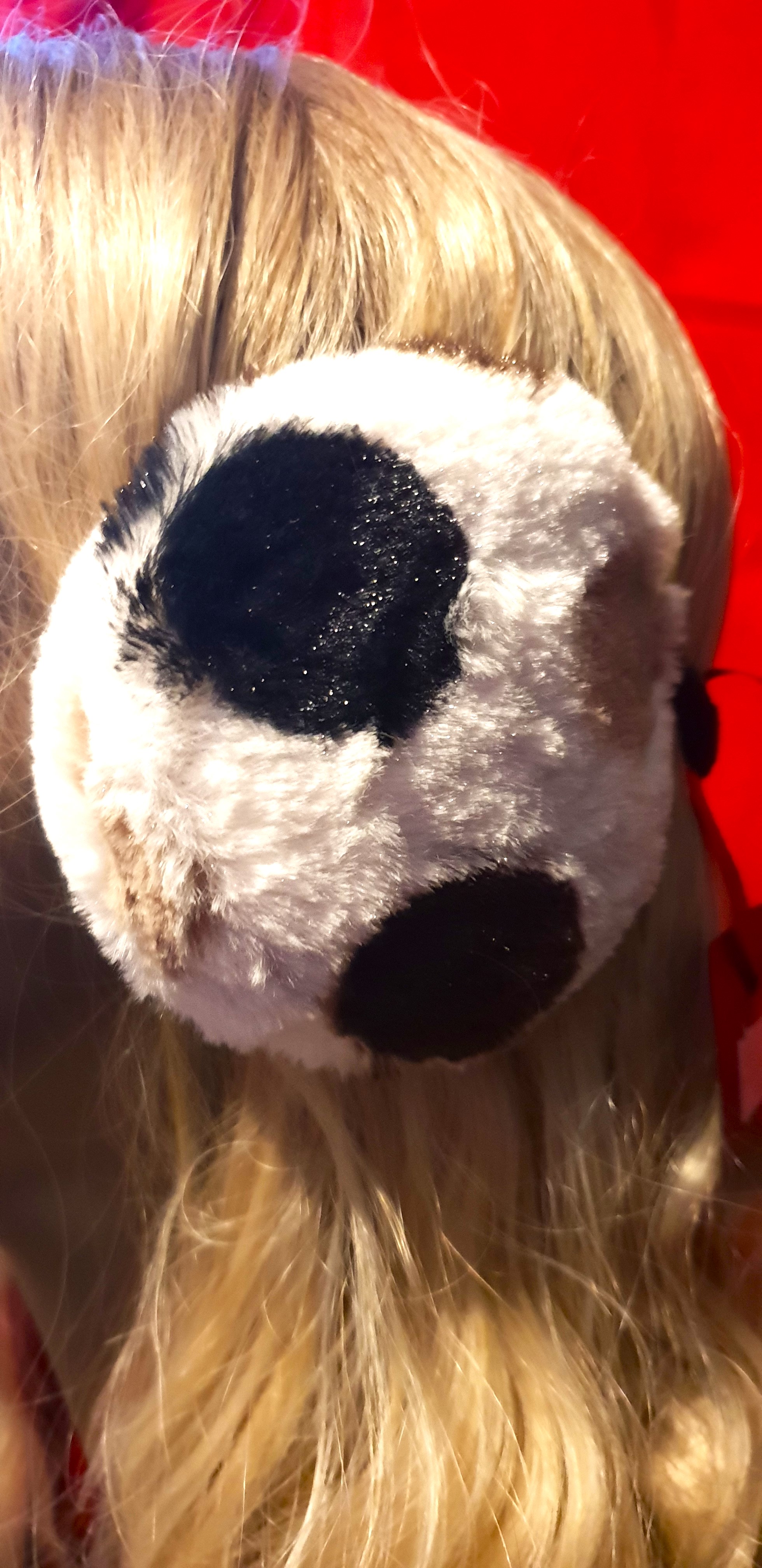 One size fit a child over the head as a hairband or adult using the band around the back of the head. 7 sets of black, 3 sets of white with black spots.