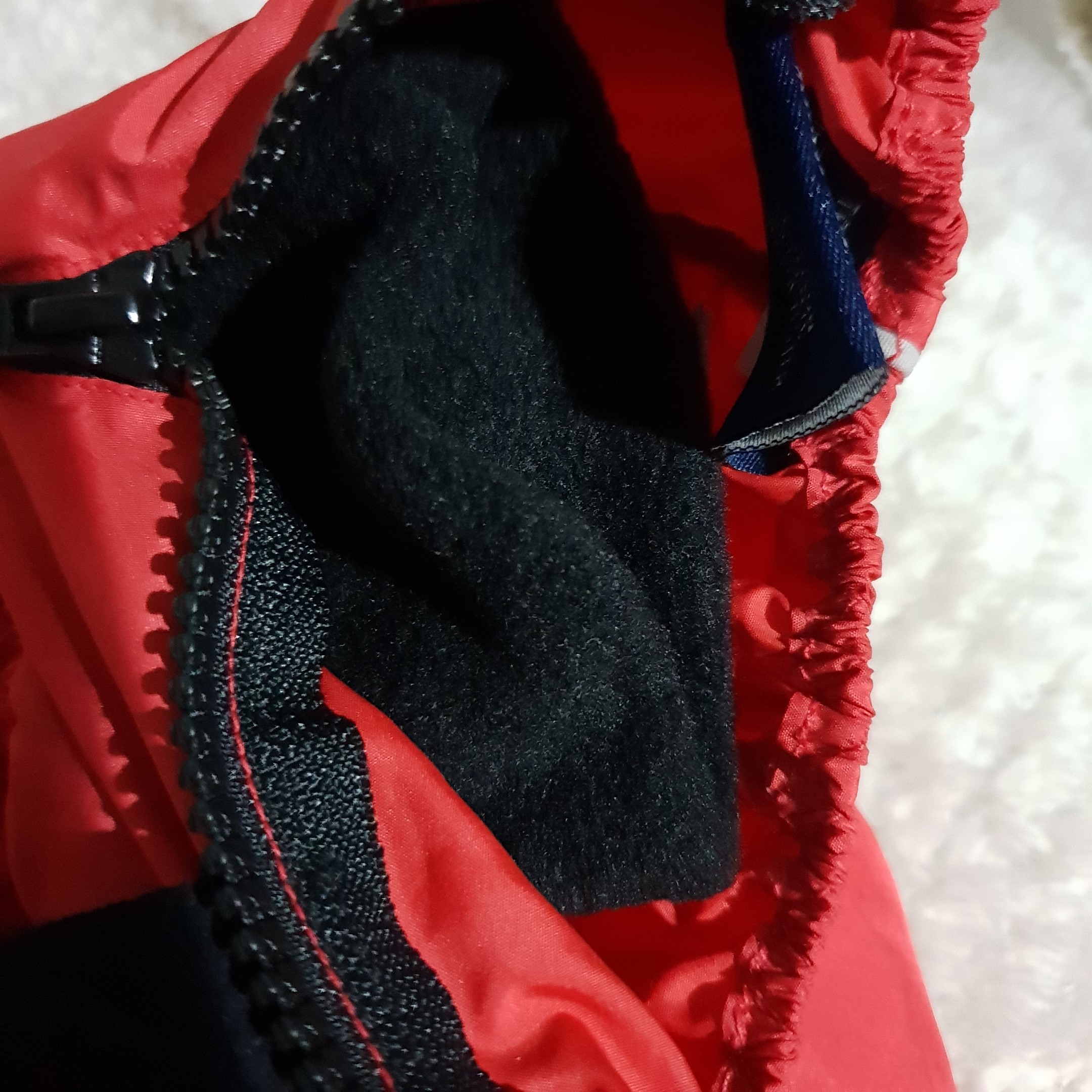 Polyester outer shell with faux fur trims and black polyester lining.