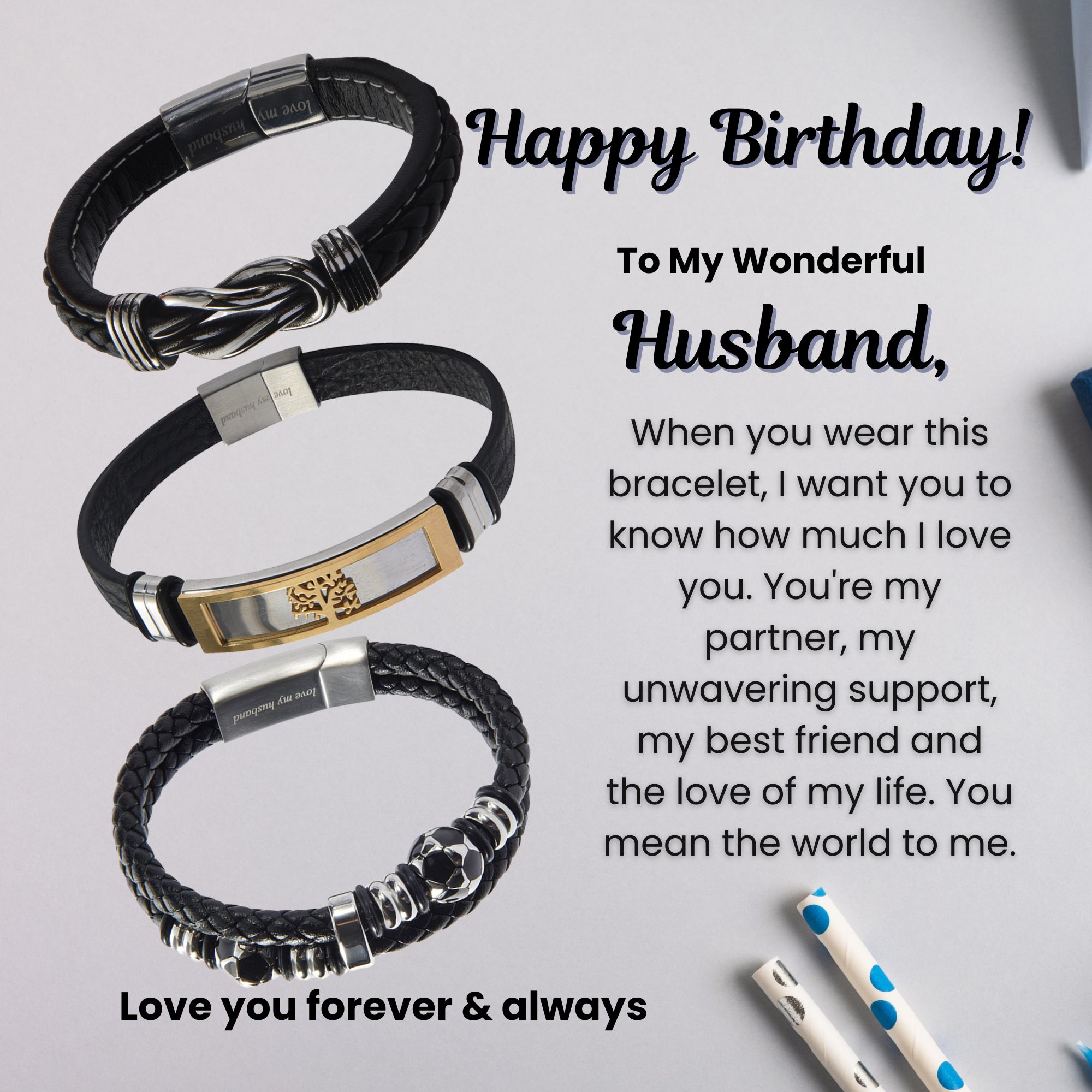 - Complete Gift Set: Your purchase includes the bracelet, a personalised message, a stylish gift bag, an elegant gift box, and a separate note card for a handwritten touch. Everything you need for a perfect presentation to show your husband how much you care.