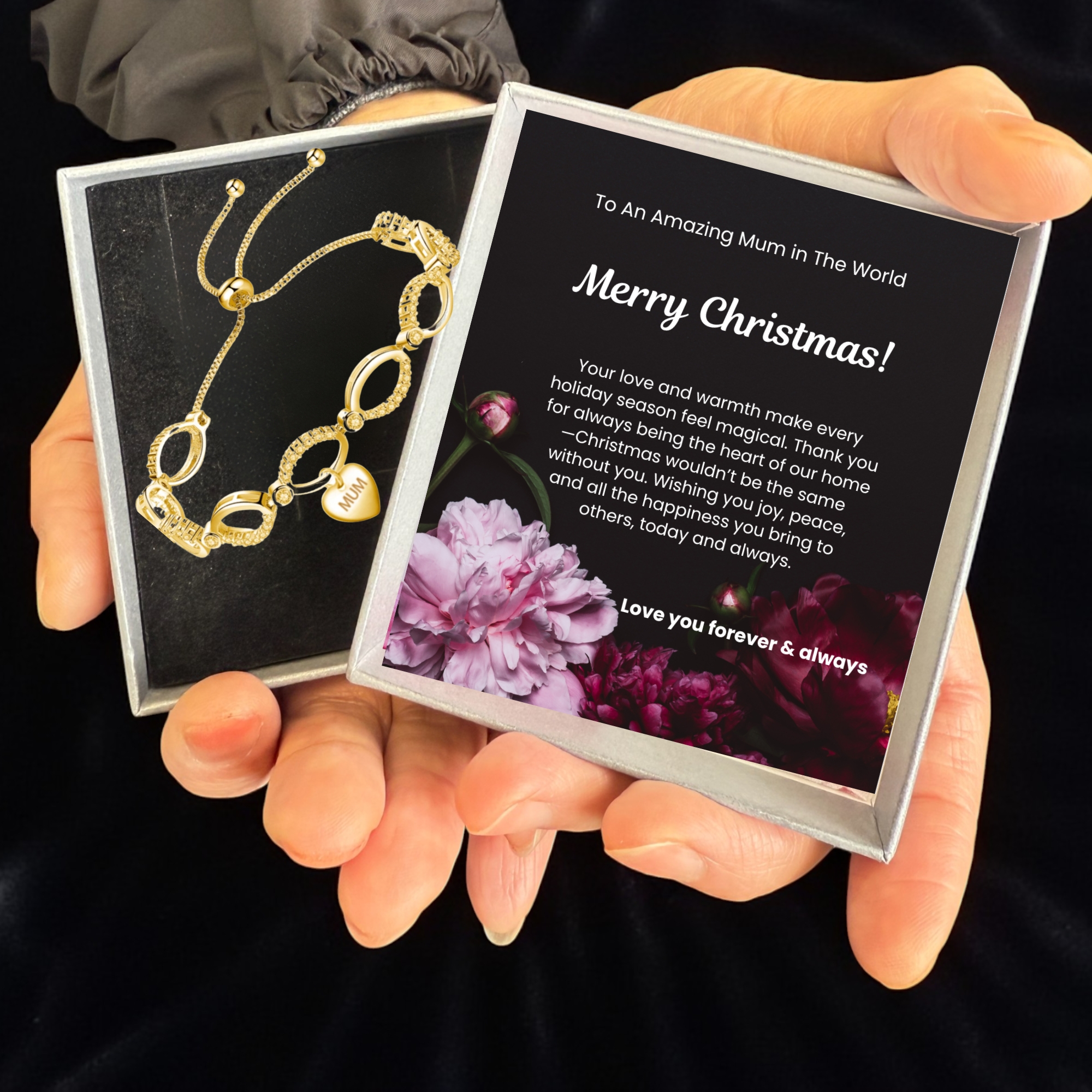 12 Sets-Infinity Bracelet for Mum with Christmas Messsage-Gold, Rosegold and Silver|GSVB061-Mum-Christmas MSG|UK SELLER