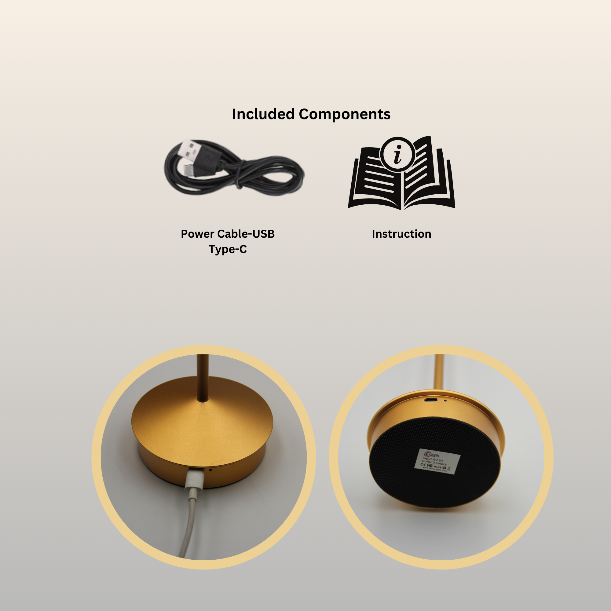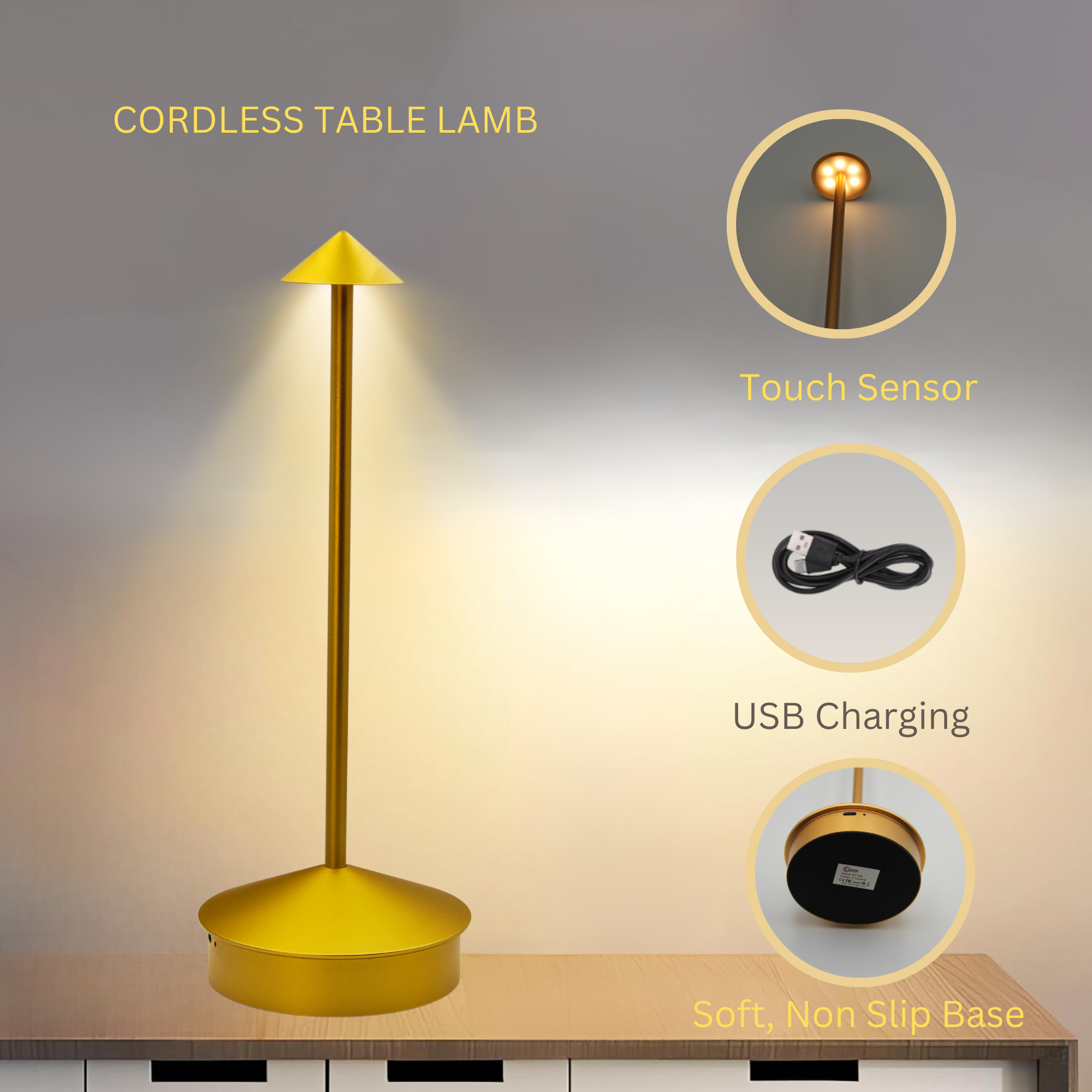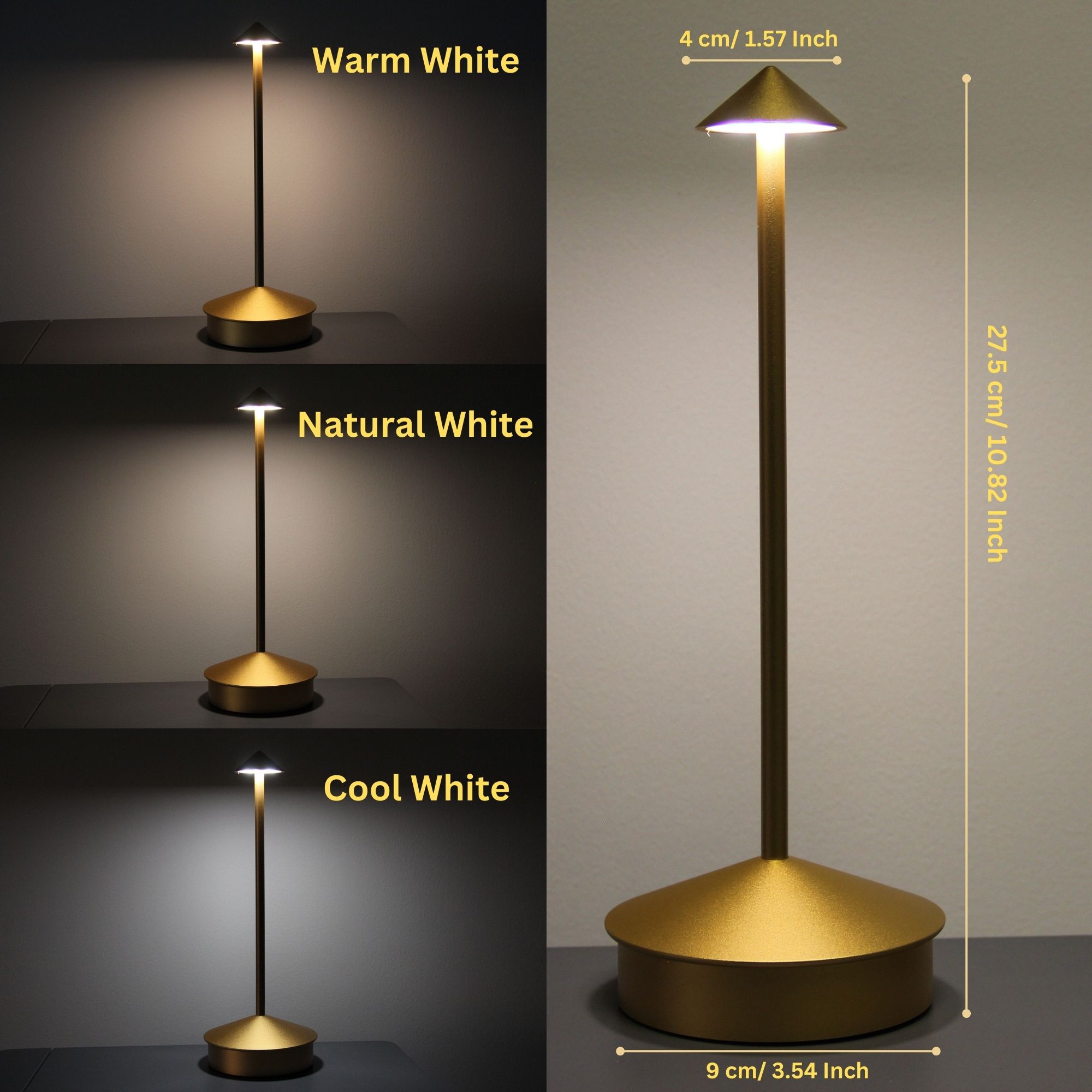 Product Type: Premium Cordless LED Table Lamp – Gold, Rechargeable, Touch Control, Dimmable, 3 Colour Temperatures