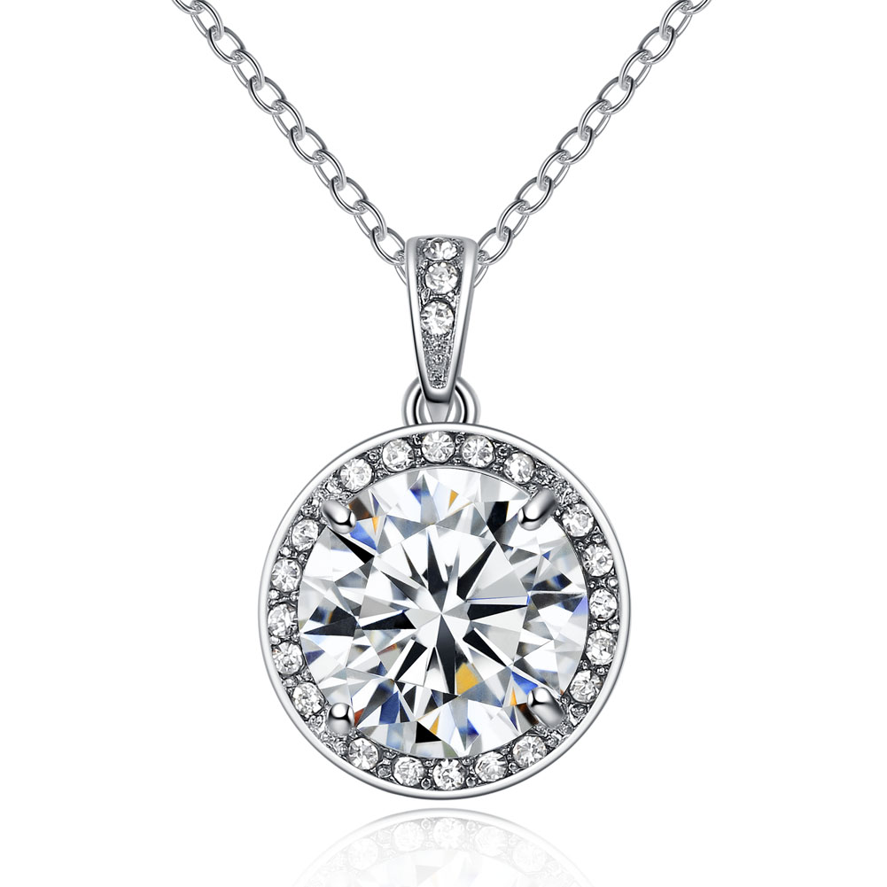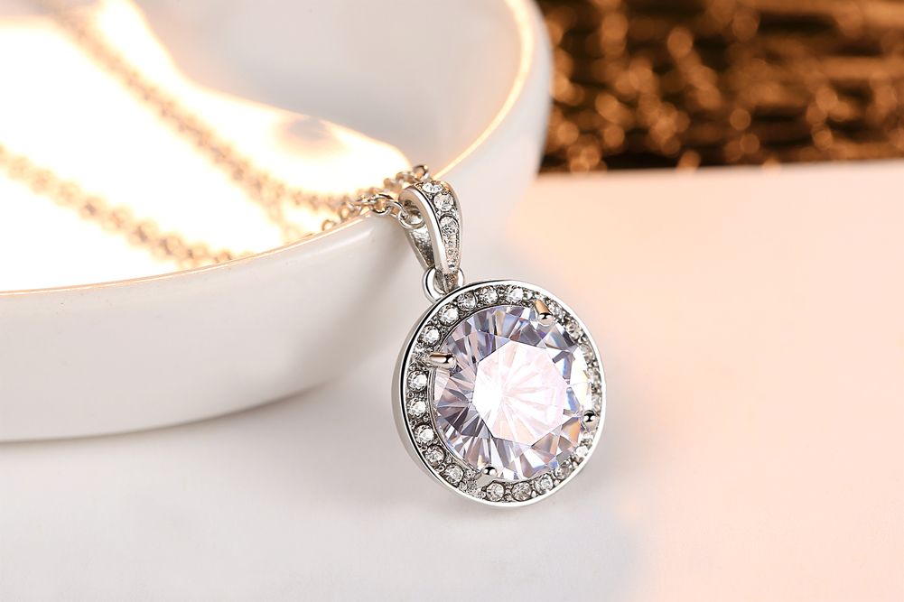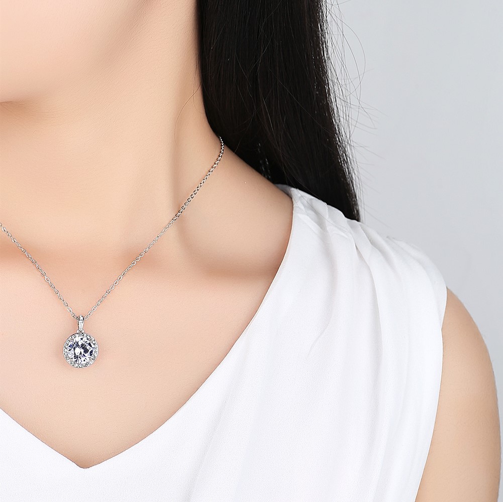 20 pcs - Classy Round Silver Zircon Crystals Pendant Necklace and Stud Earrings Set With Valentine Gift Box - 10 Sets|GCJ142GCC060-Valentine Box|UK SE