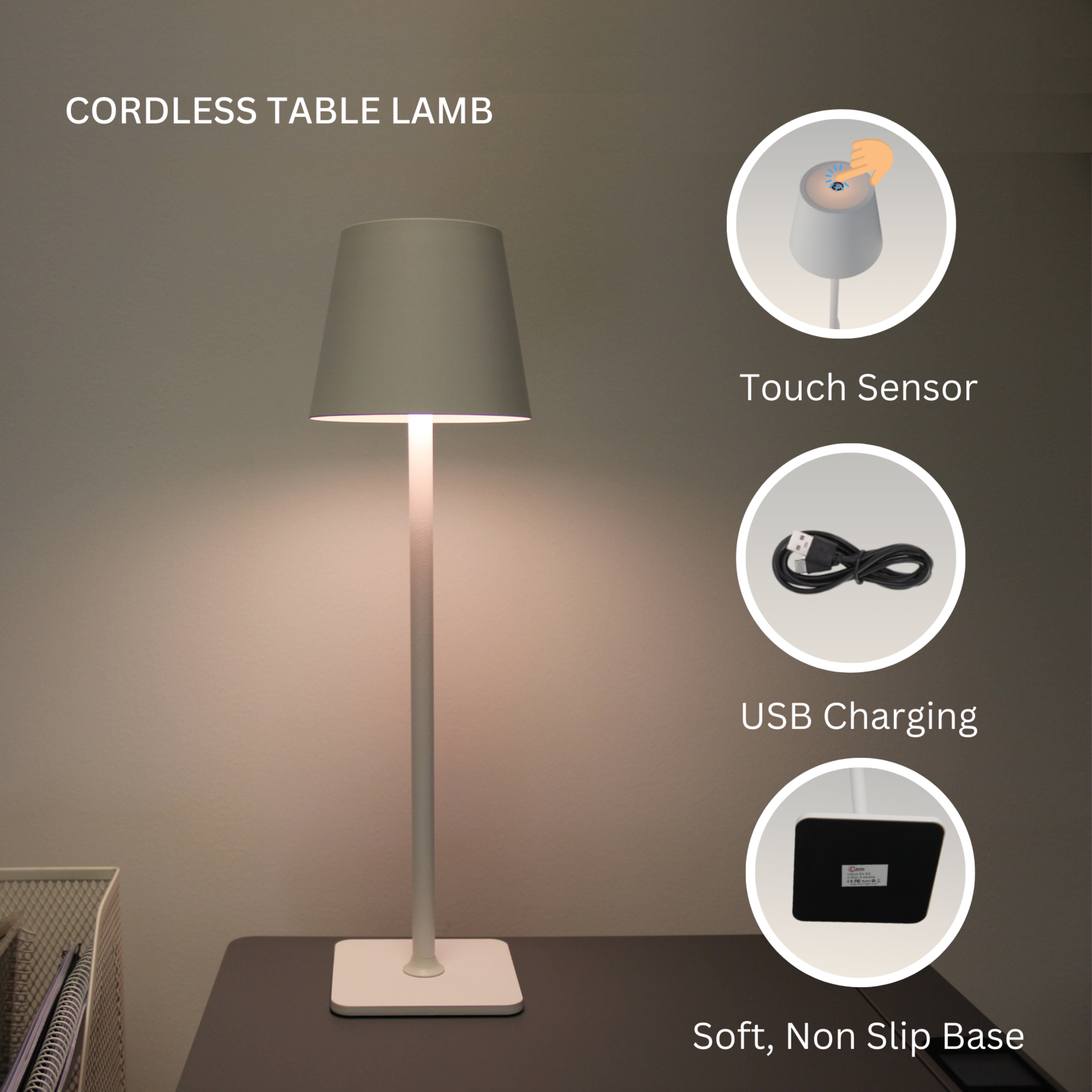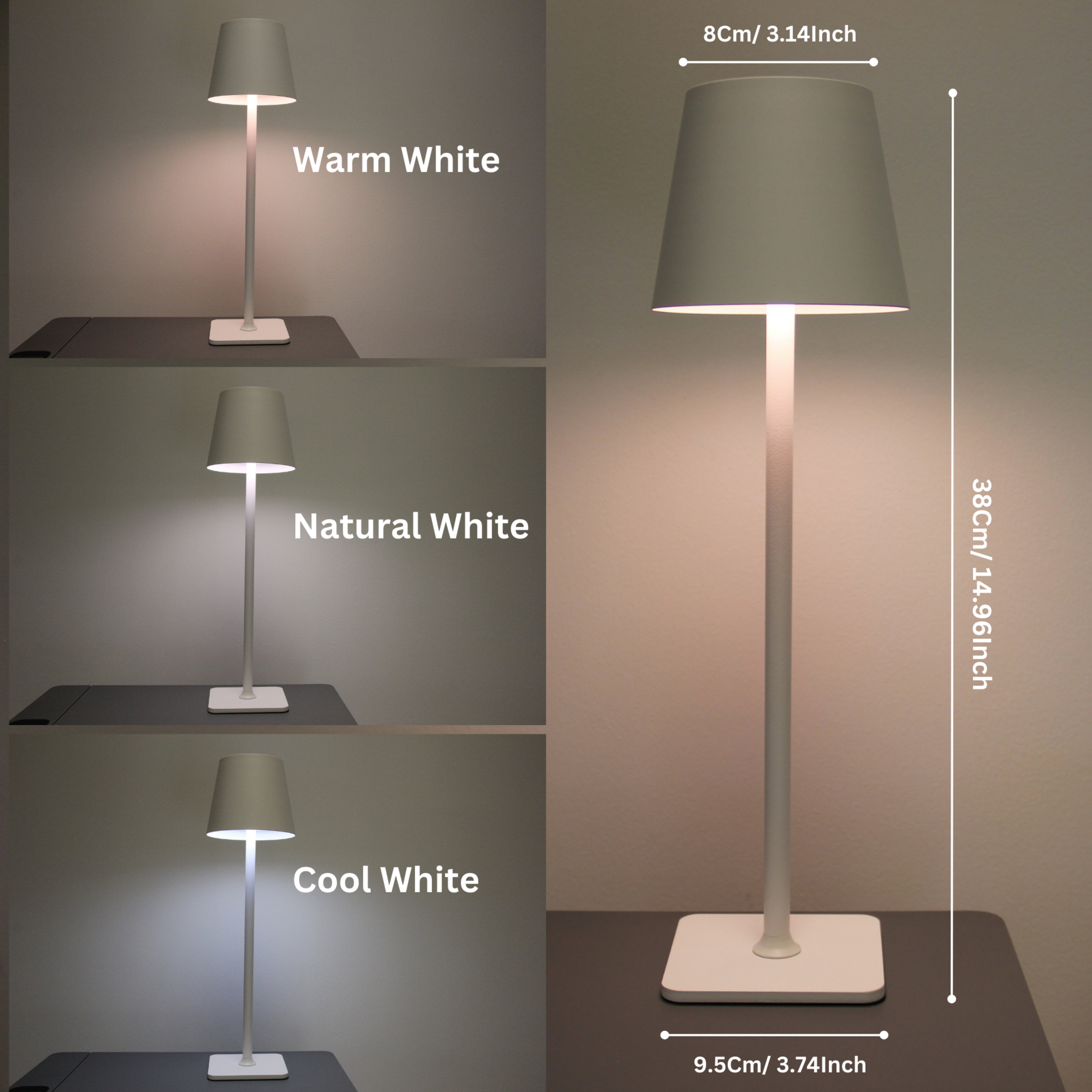 Product Type: Premium Portable LED Table Lamp – Rechargeable, Touch Dimmable, 3 Colour Temperatures, Modern White Finish