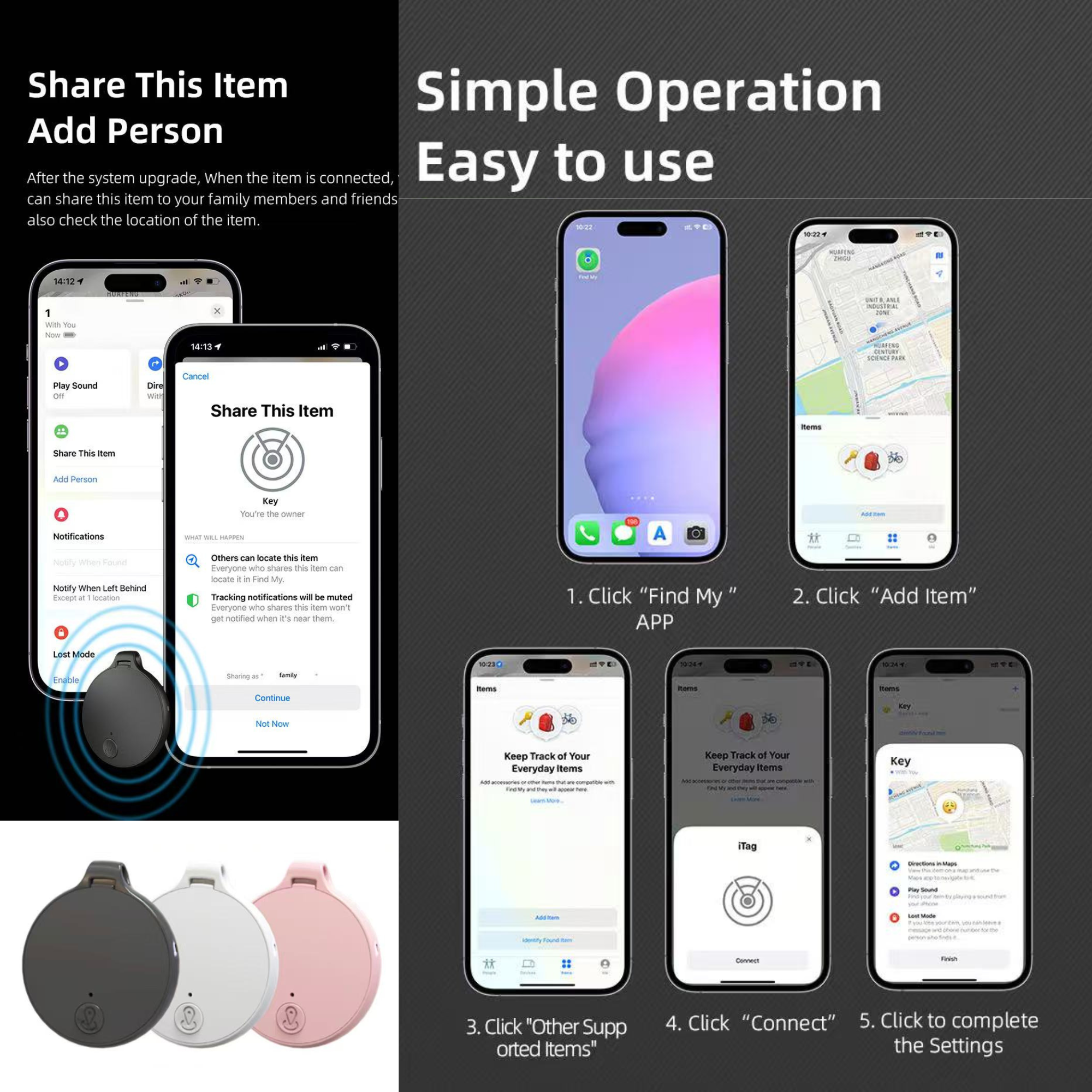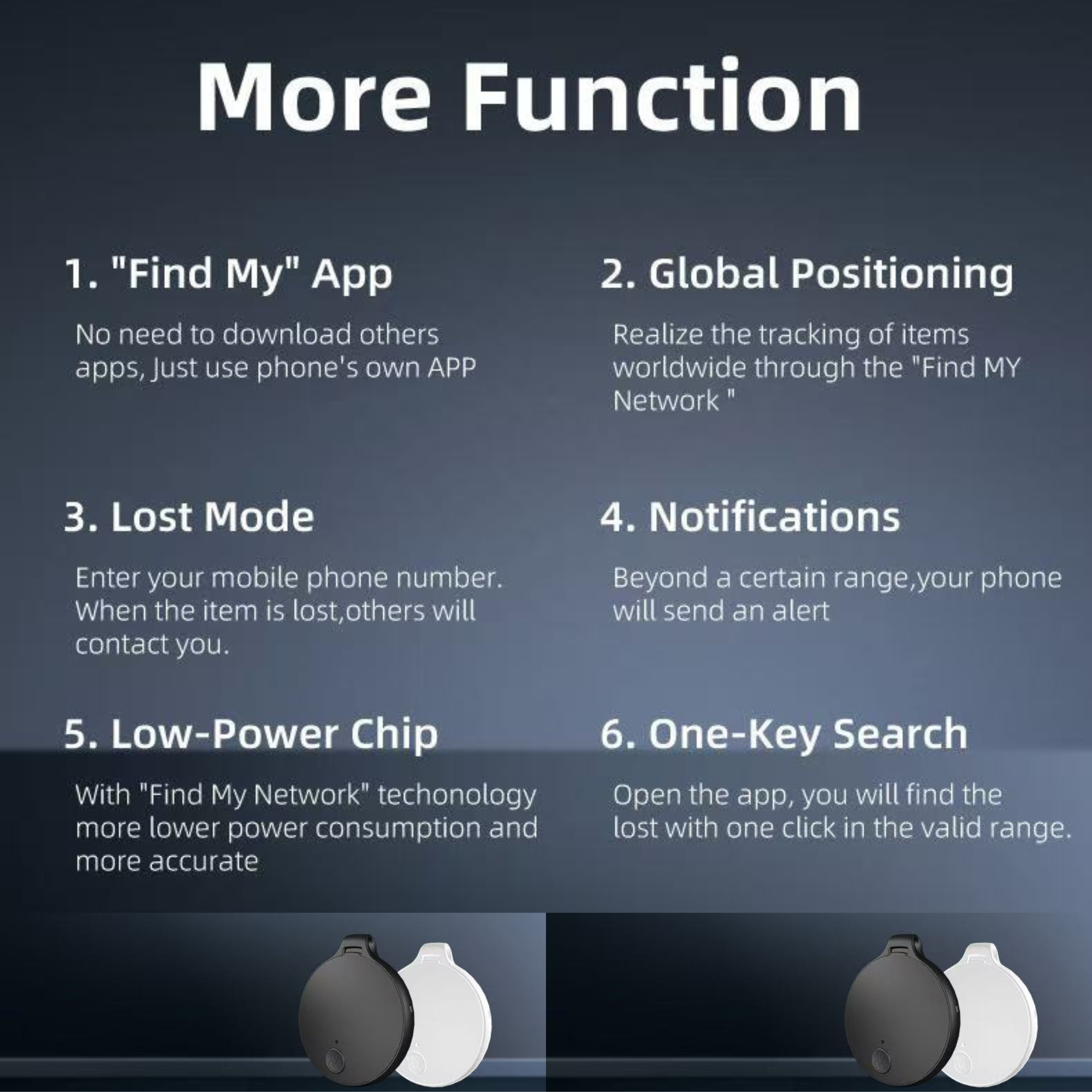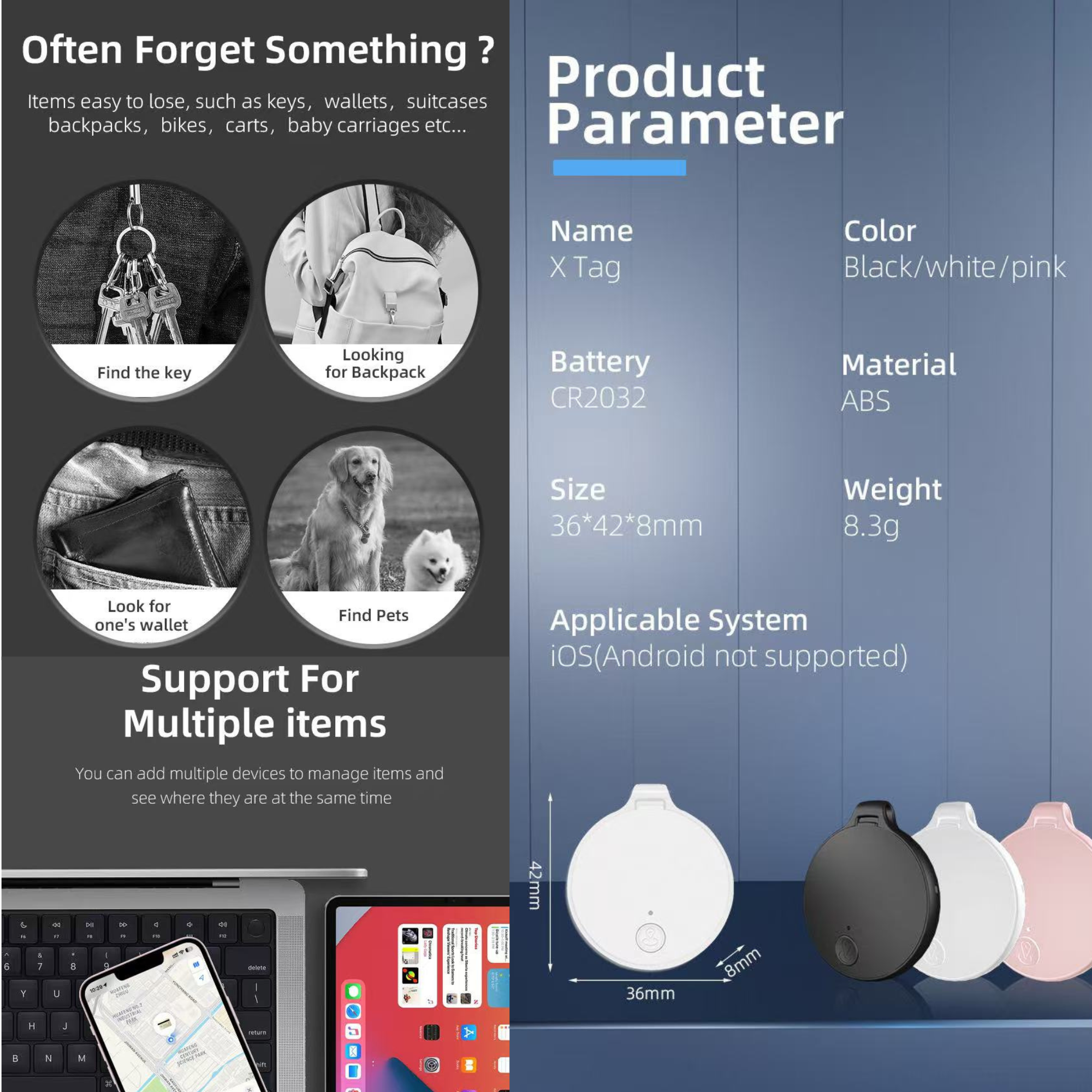 - Bluetooth Tracker – Compatible with Apple Find My (iOS) ONLY. The Tag is a global positioning tracker designed specifically for the Apple ecosystem. It is MFi Certified and integrates directly with the Apple “Find My” network, meaning it does not require any third-party apps. It pairs directly with the pre-installed Find My app—no additional downloads or subscriptions required. With a quick one-tap setup, you can start tracking your belongings instantly for added convenience and peace of mind.