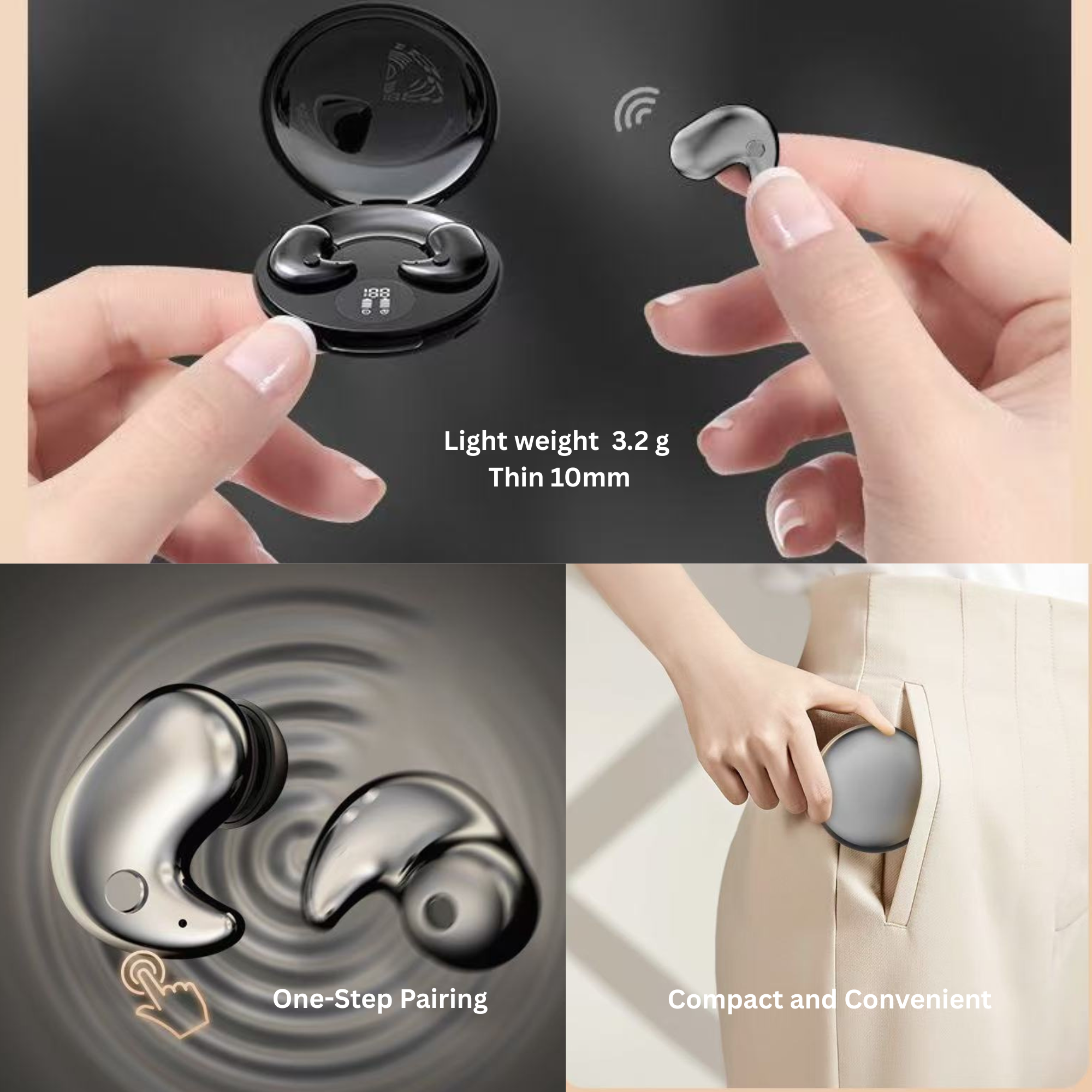 Crafted with soft silicone and a compact, on-ear design, these lightweight sleeping earbuds provide a secure, comfortable fit that won’t cause ear fatigue—even during long wear. Perfect for sleeping, working out, or on the go, they stay in place while delivering an immersive audio experience. With IPX7 nano-coating technology, these earbuds are fully waterproof and sweatproof, making them ideal for sports and outdoor activities.