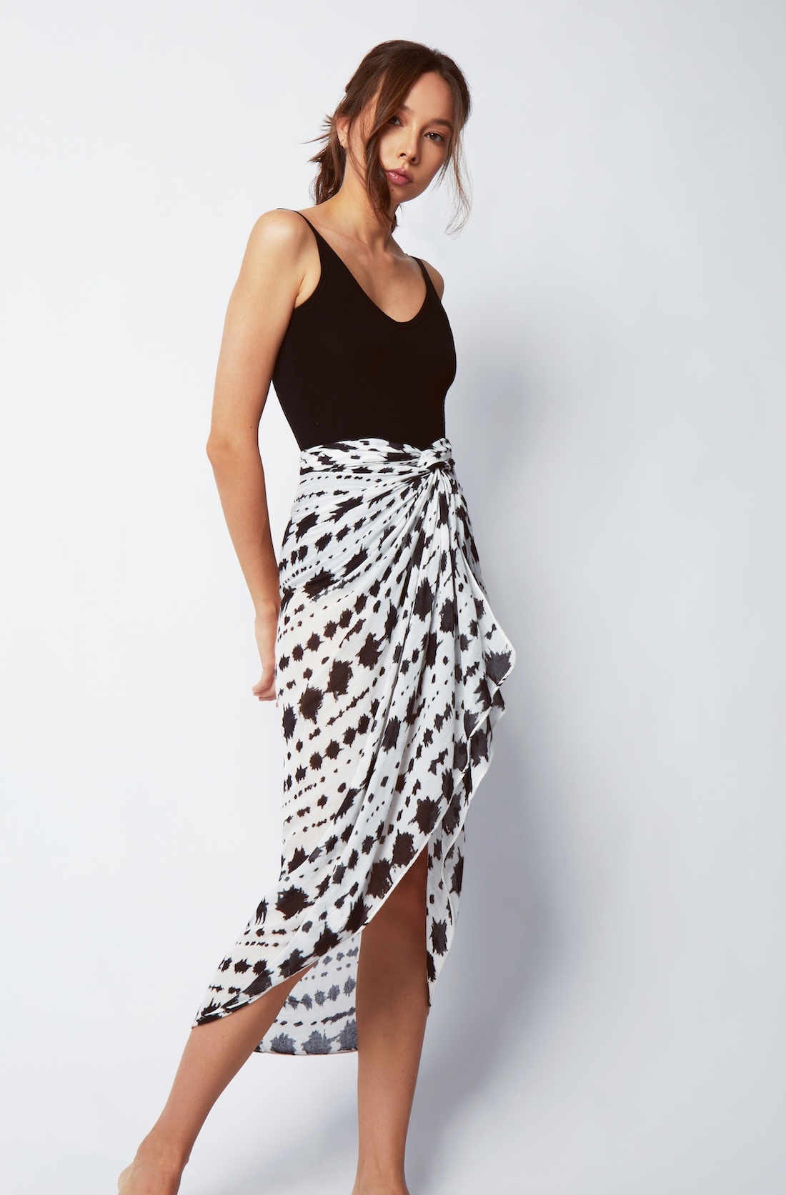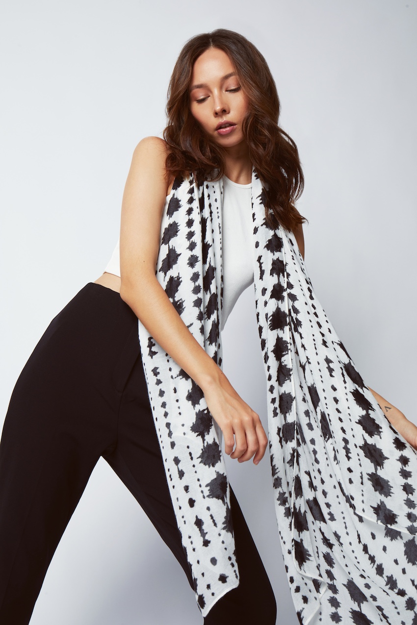 Women's sarong crafted from luxuriously soft bamboo fabric with a hand-drawn monochrome print. Designed to be used as both a beach cover-up and a lightweight scarf. Fits UK sizes 6-18 as a sarong (up to 45 inch waist). Key features: Silky soft feel Lightweight and breathable Non-static with a flattering drape UV-resistant for sun protection Anti-bacterial toprevent odour Crafted from 100% bamboo Coloured with eco-friendly dyes