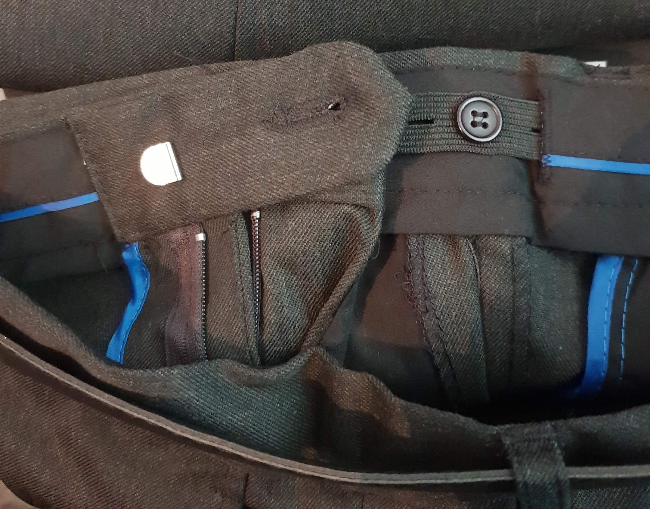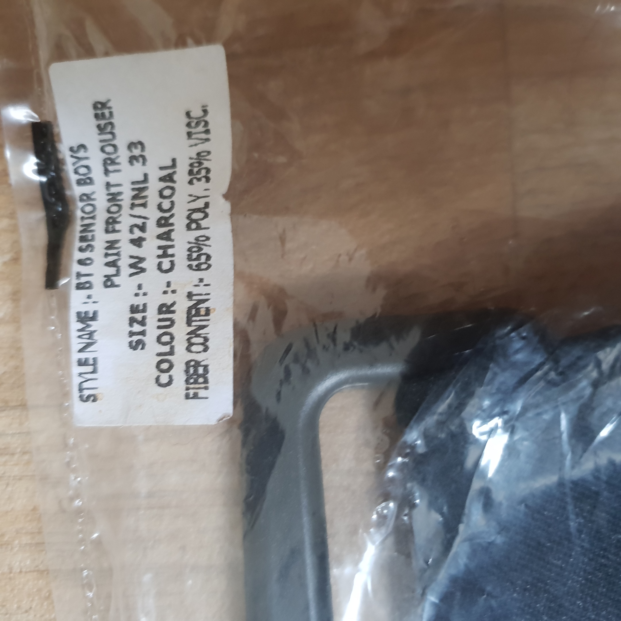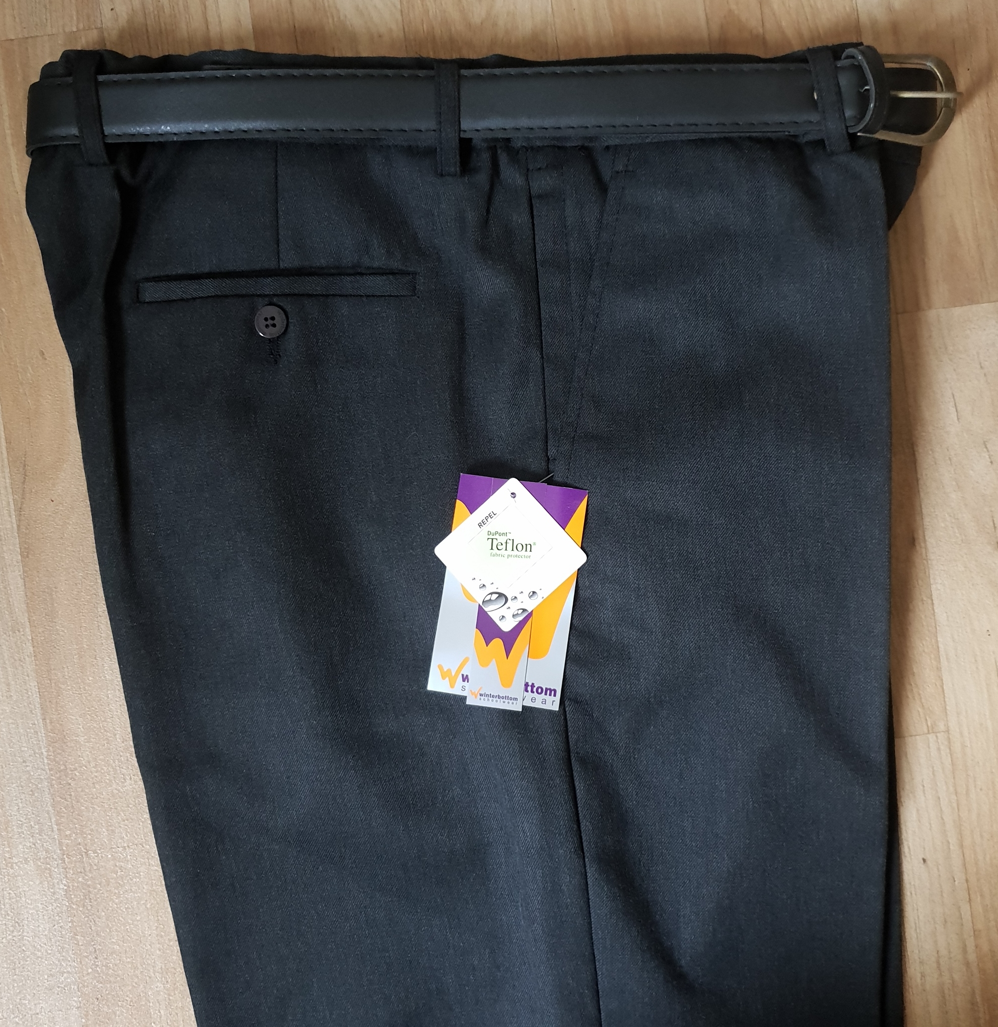Waist 42" Leg 33" senior Charcoal Grey x 4 pairs. These include a quality belt and come on hangers in plastic covers. Model BT6