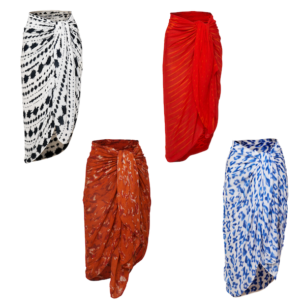 Mixed women's sarongs crafted from luxuriously soft bamboo fabric, with 4 different prints. 40 sarongs in total (10 of each print). Designed to be used as both a beach cover-up and a lightweight scarf. Fits UK sizes 6-18 as a sarong (up to 45 inch waist). Key features: - Silky soft feel - Lightweight and breathable - Non-static with a flattering drape - UV-resistant for sun protection - Anti-bacterial to prevent odour - Crafted from 100% bamboo - Coloured with eco-friendly dyes