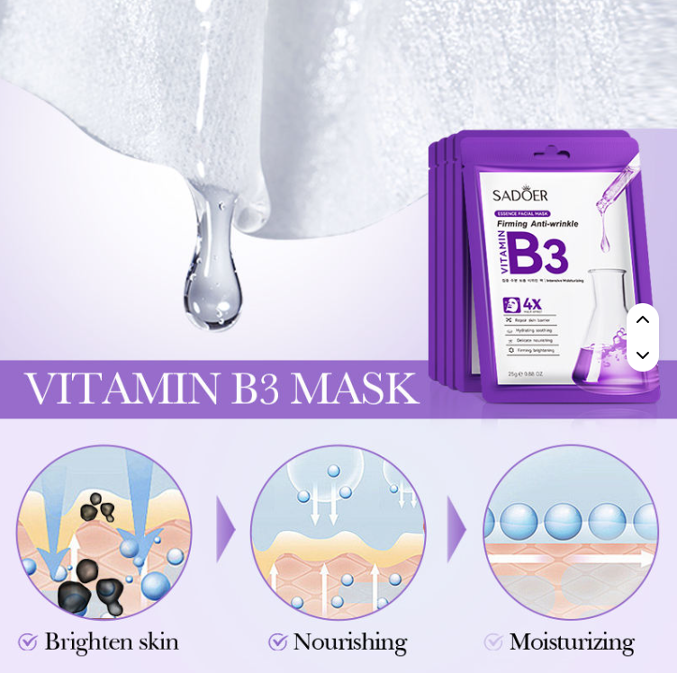 50pcs-SADOER Deep Hydrating & Brightening Radiance Facial Masks Set-Vitamin B3 & B5, & Coenzyme Q10-Mixed|GCMK002-Vitamin Mask-50pcs|UK SELLER