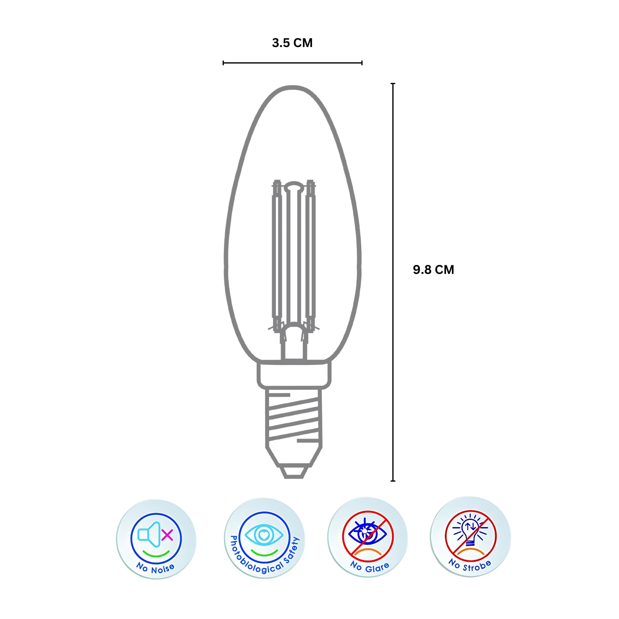 Product Type: LED Candle Bulbs – 4W, Warm White 2700K, Filament T-Candle Style