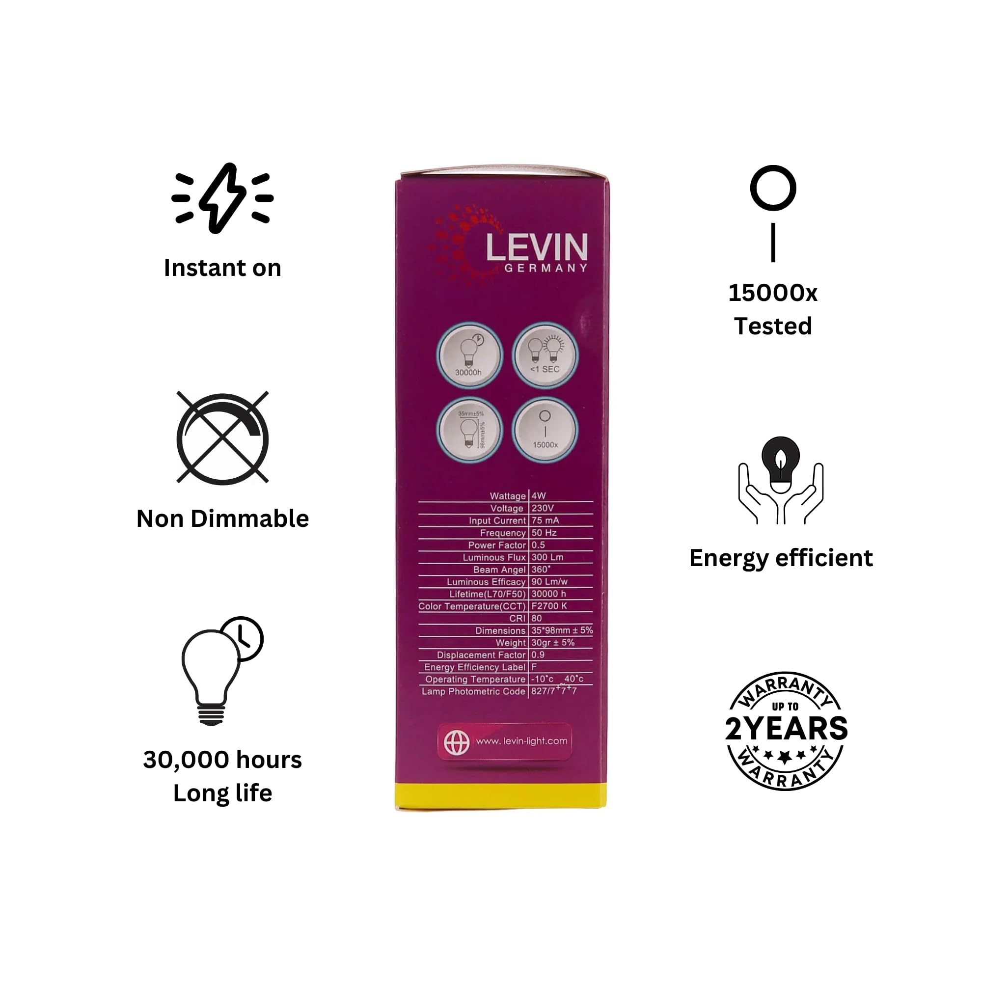96 Filament Candle Bulbs (16 x 6-Pack) – Levin 4W LED, Warm White 2700K, C11 Filament Style, E14 Base, Vintage Look, Energy Efficient