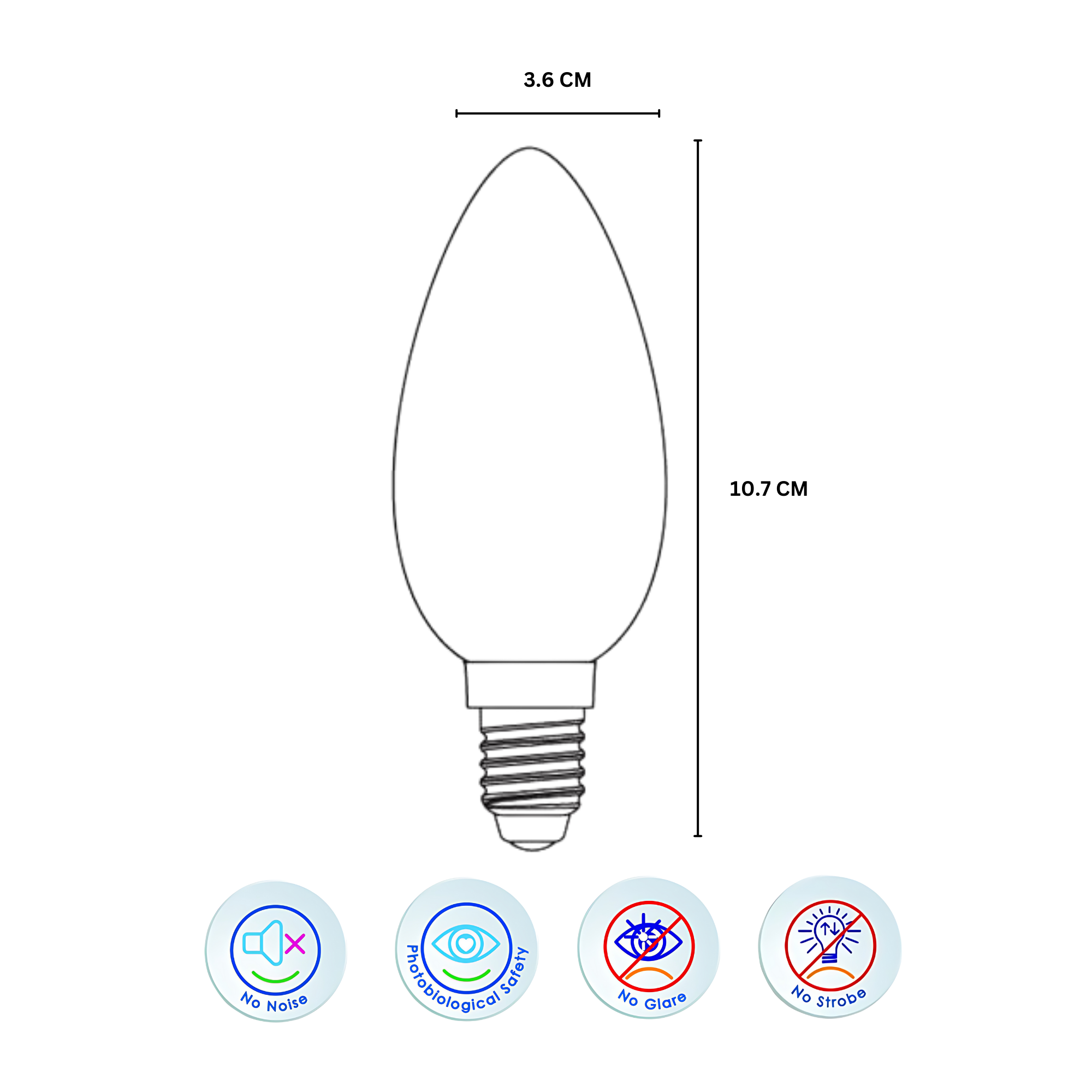 6W LED output – replaces traditional 40W incandescent candle bulbs