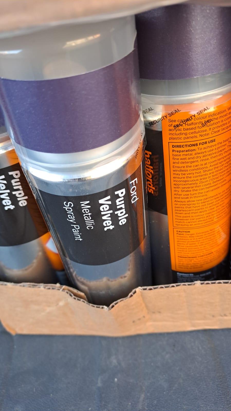 colours red silver whte grey as per cans touch up (10) rest 502 halfords cans and break fluid 18 cansĀ