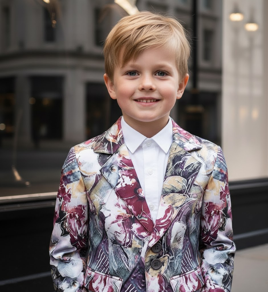 Boy's Slim Fit Floral Blazer – Elegant Tuxedo Dinner Party Jacket | Ages 4–12 | Formal & Stylish