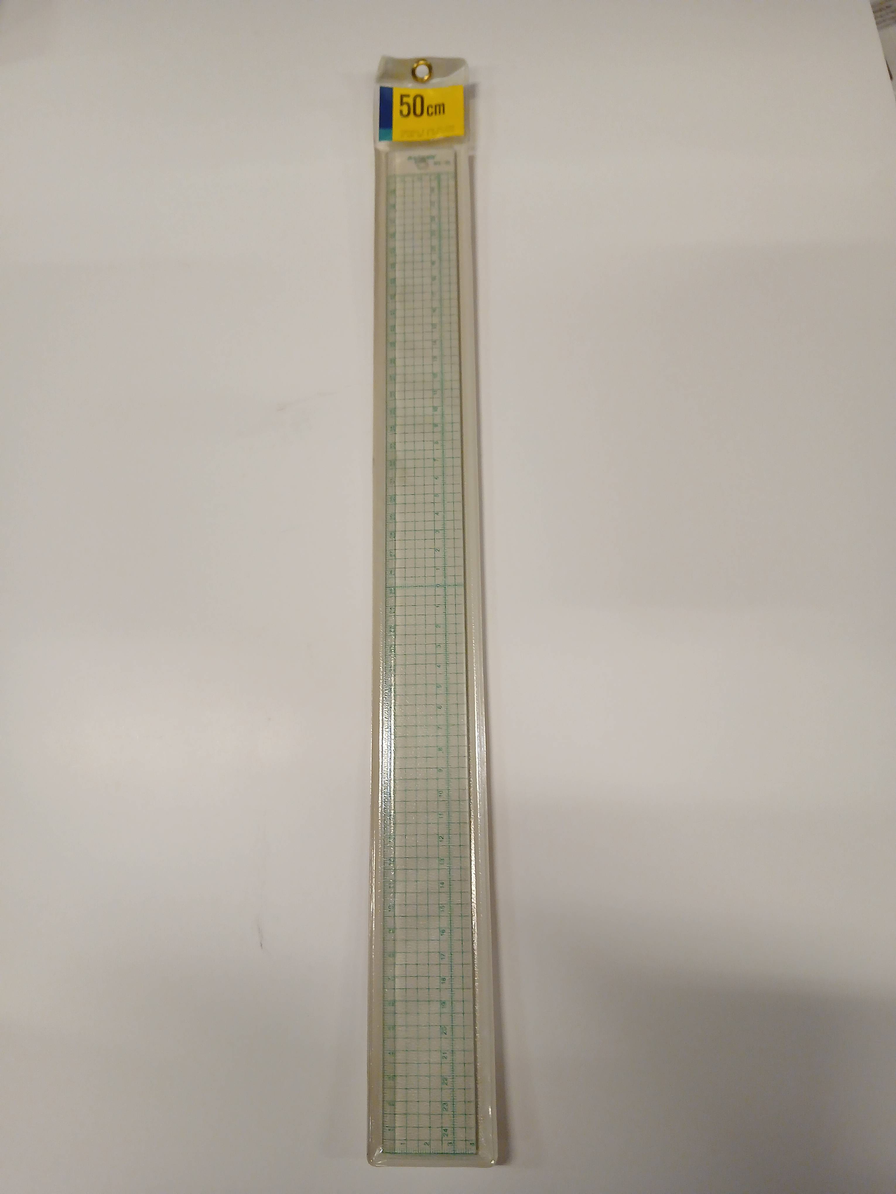 Transparent acrylic with grid markings (cm/mm), clear both ways.