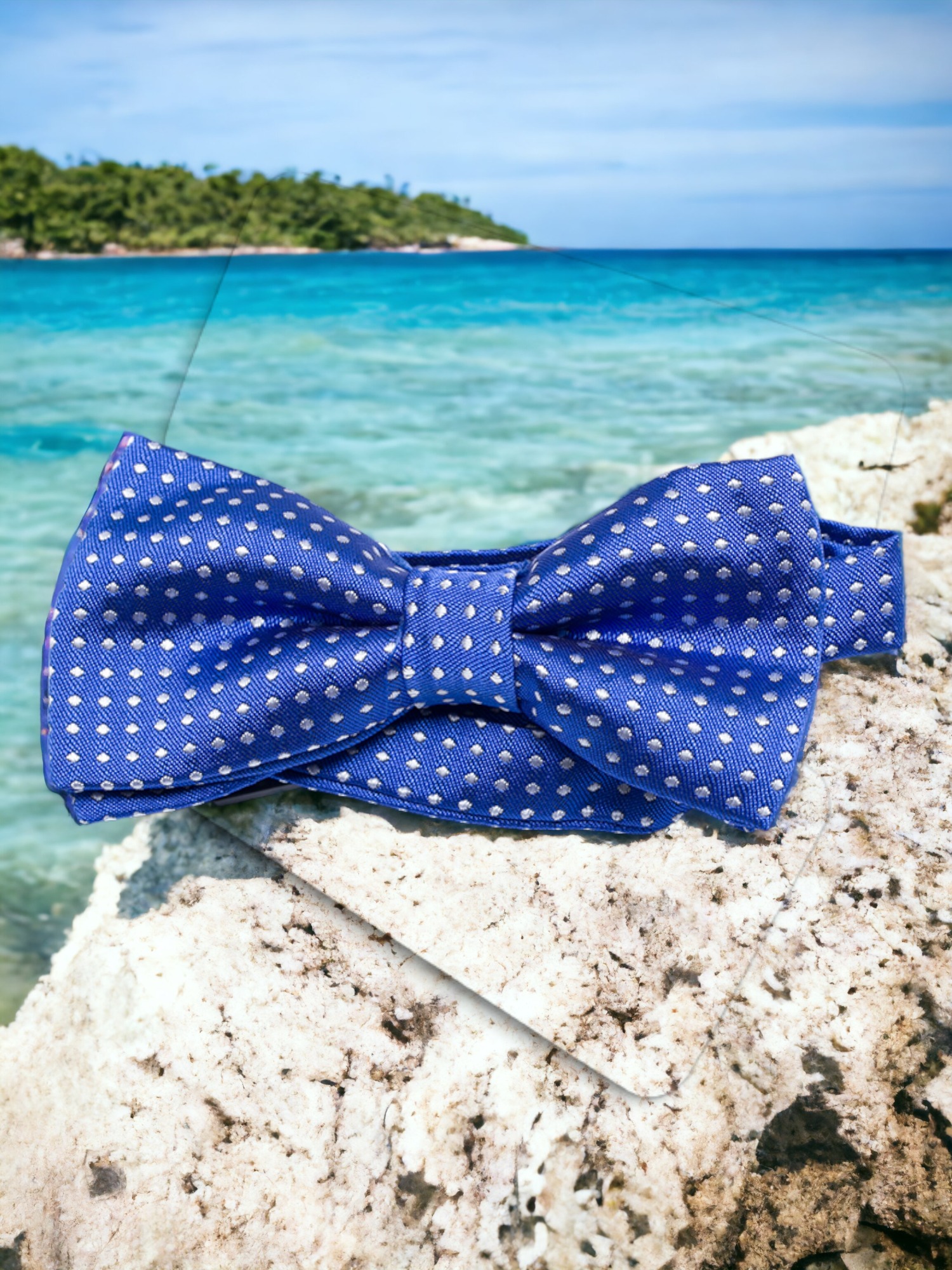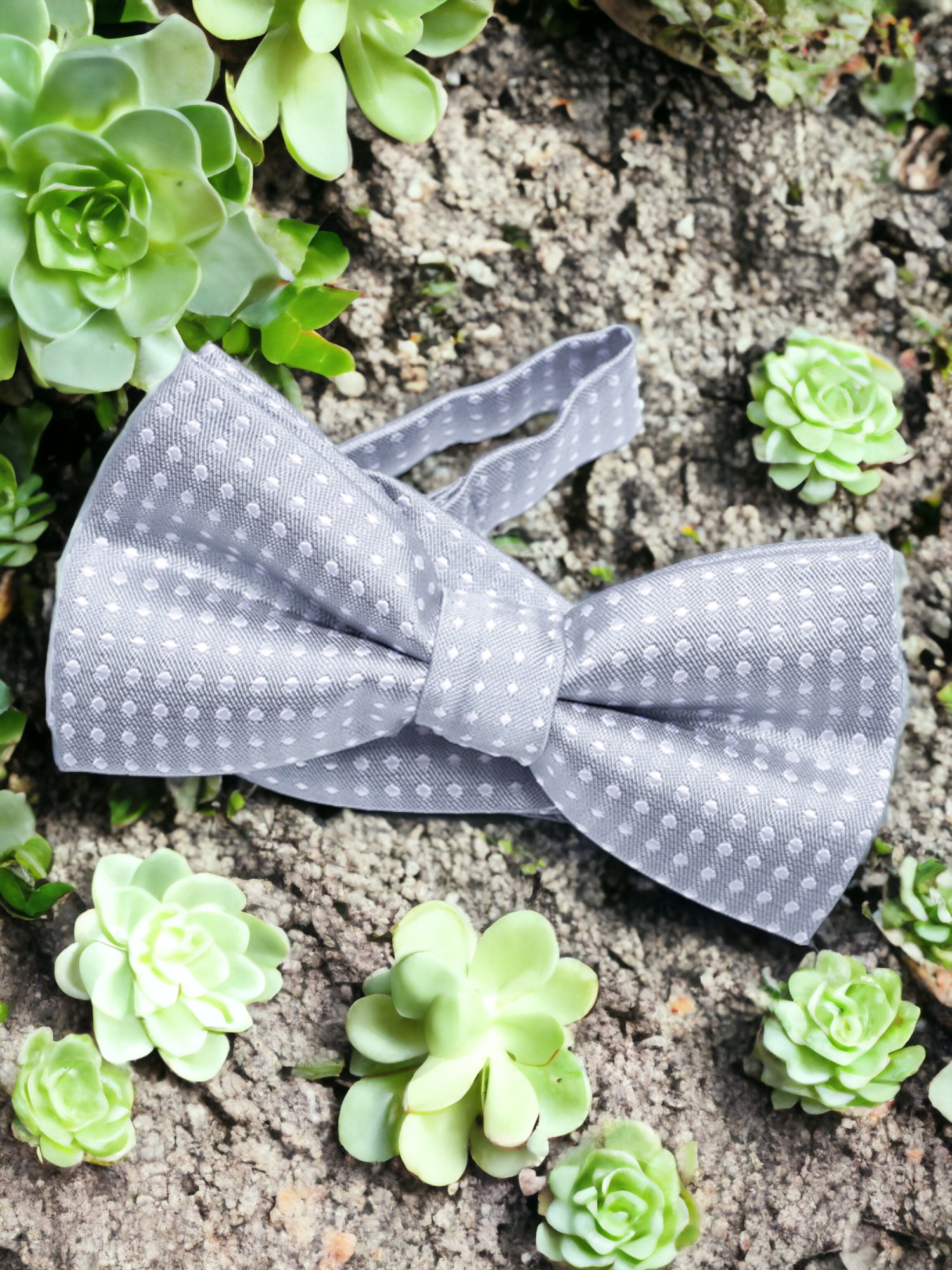 Designed with a secure clip-on feature for easy wear, this high-quality accessory is made with a refined embroidered texture and classic polka dot pattern—perfect for weddings, parties, school events, and special occasions.